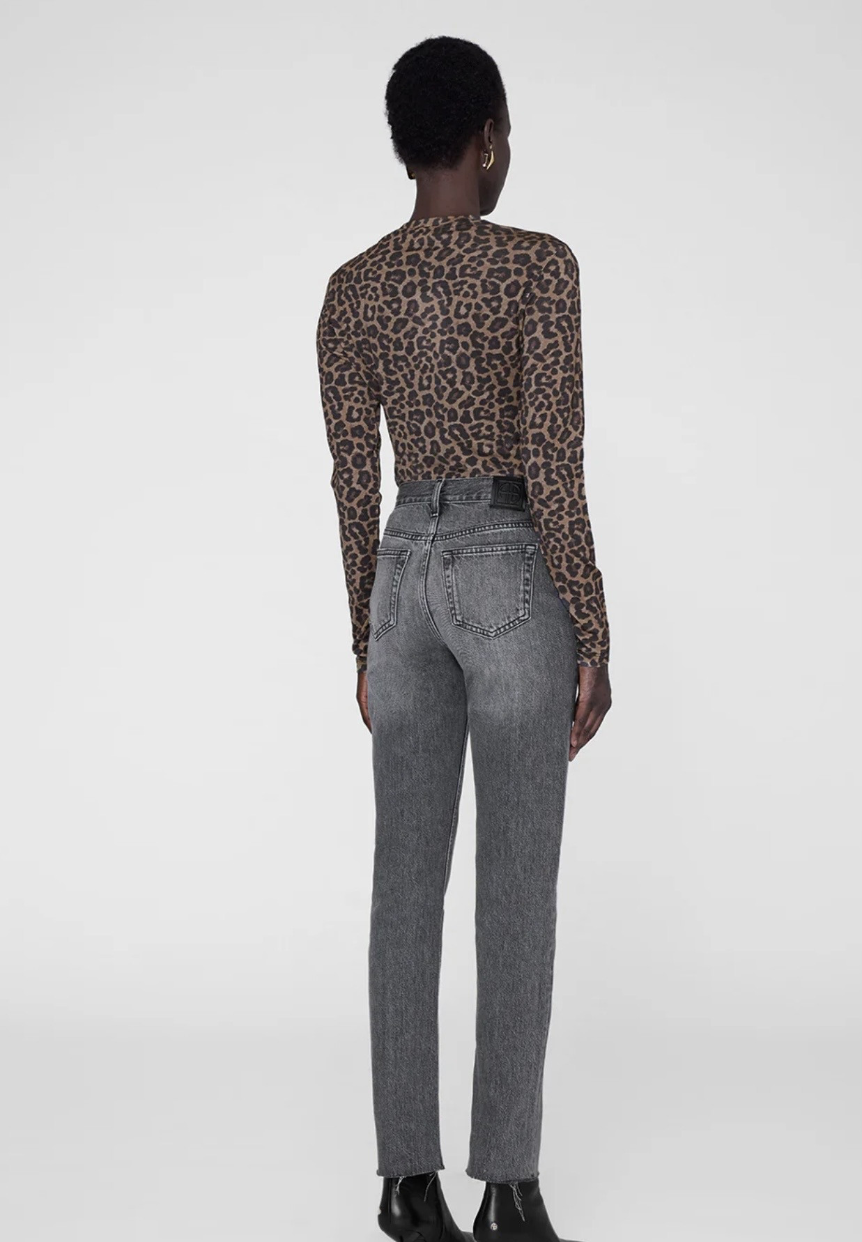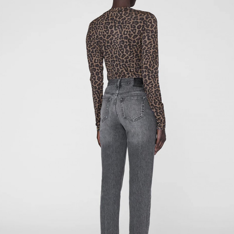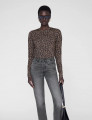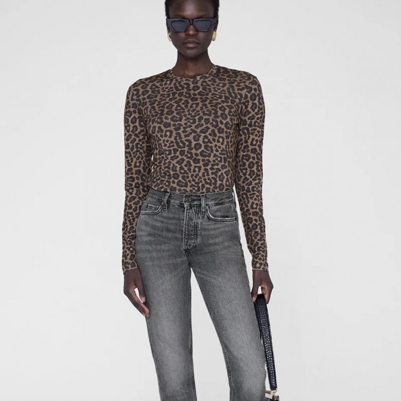 Un t-shirt ras du cou à manches longues confectionné dans une matière en jersey ultra-fine et transparente, avec un imprimé léopard d’inspiration vintage.