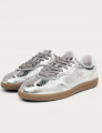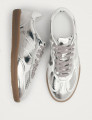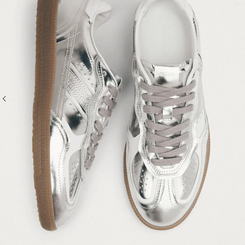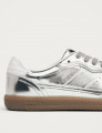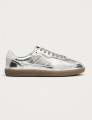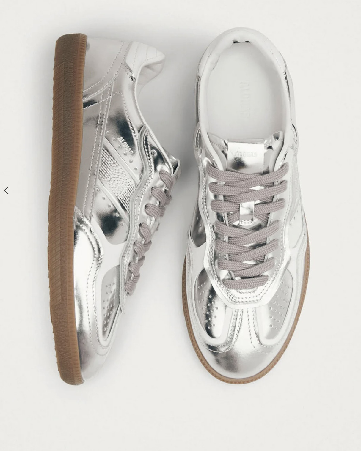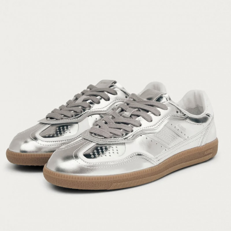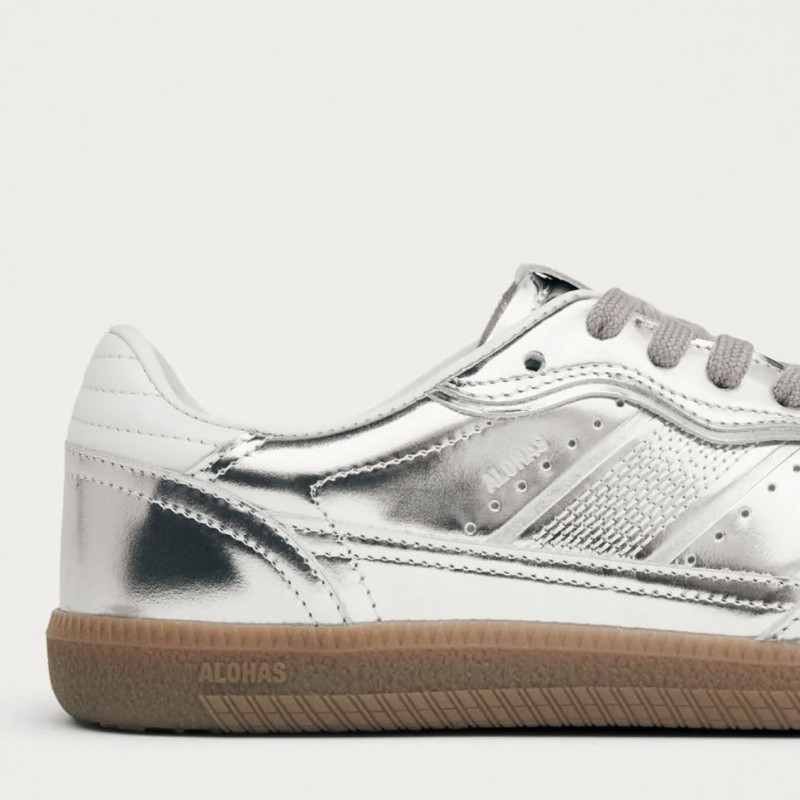 Finition métallique, la sneaker Tb.490 est fabriqué en cuir argenté qui a un éclat verni.