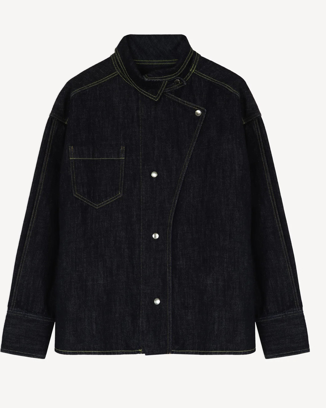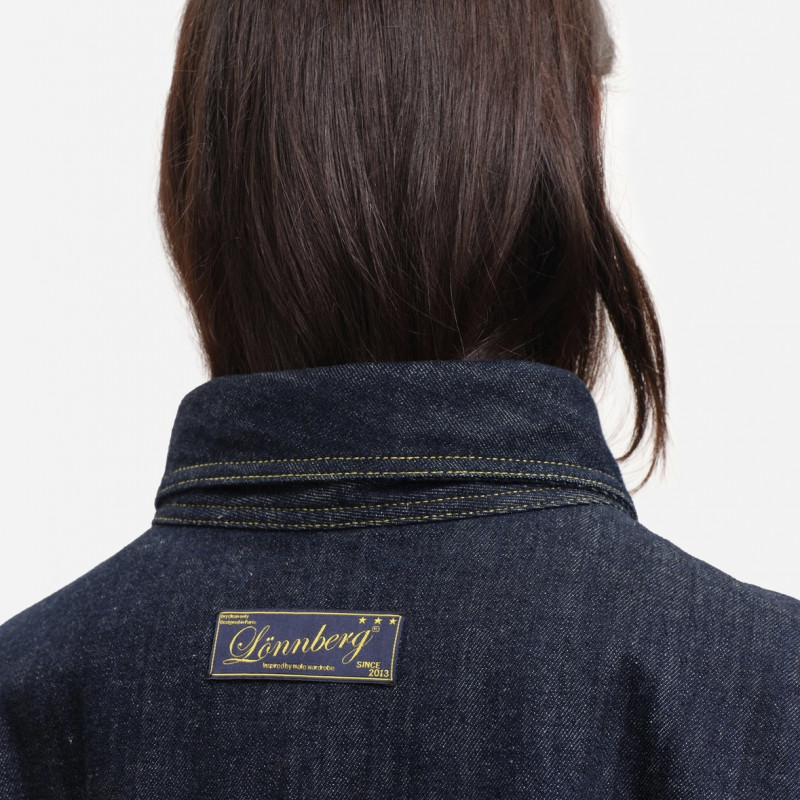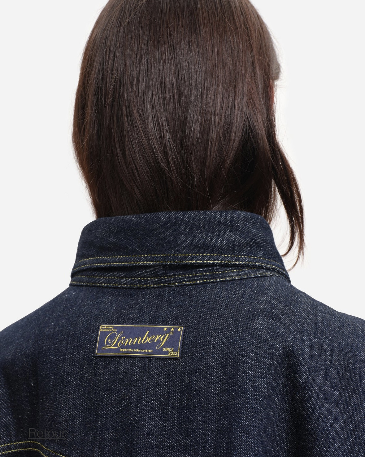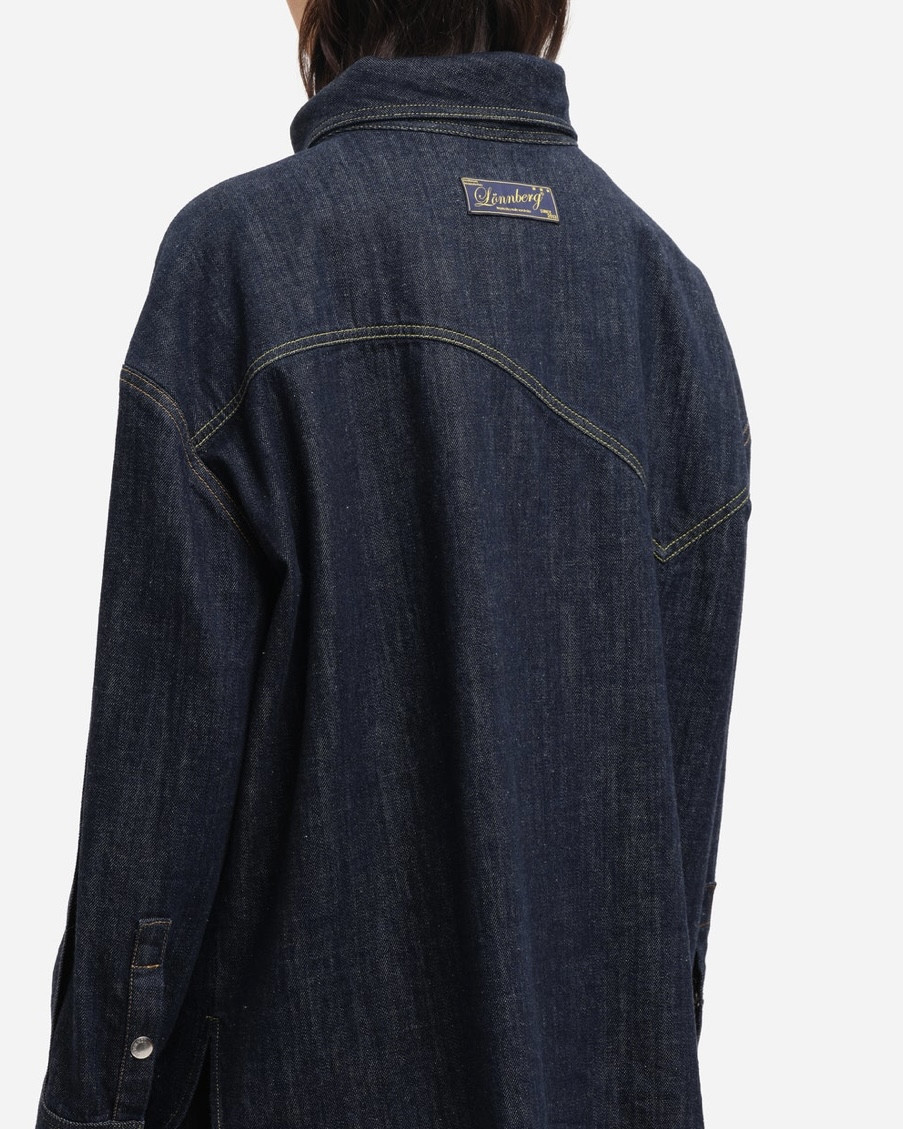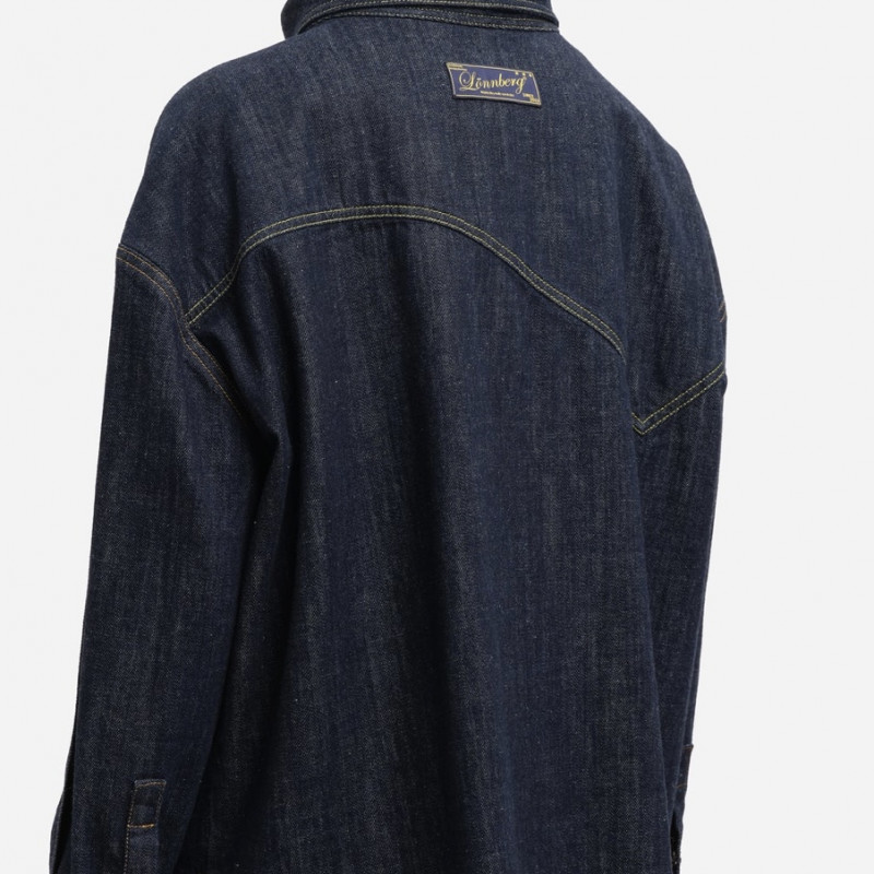 Chemise en denim 100% coton, souple et confortable, dotée d’un col déstructuré, d’un boutonnage classique, d’une poche plaquée poitrine et d’un logo Margaux Lonnberg brodé au dos, à la coupe oversize pour un porté décontracté.