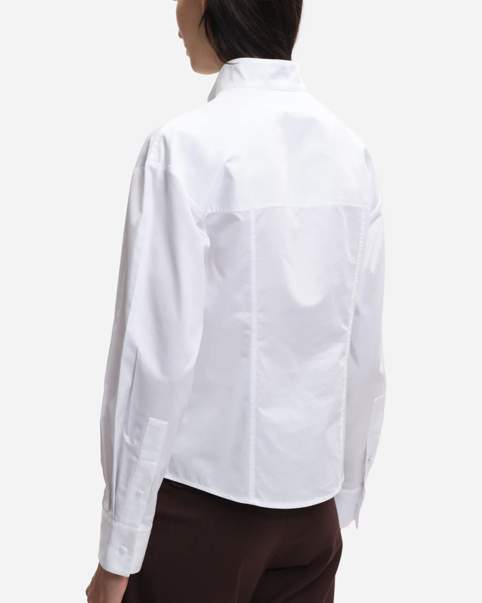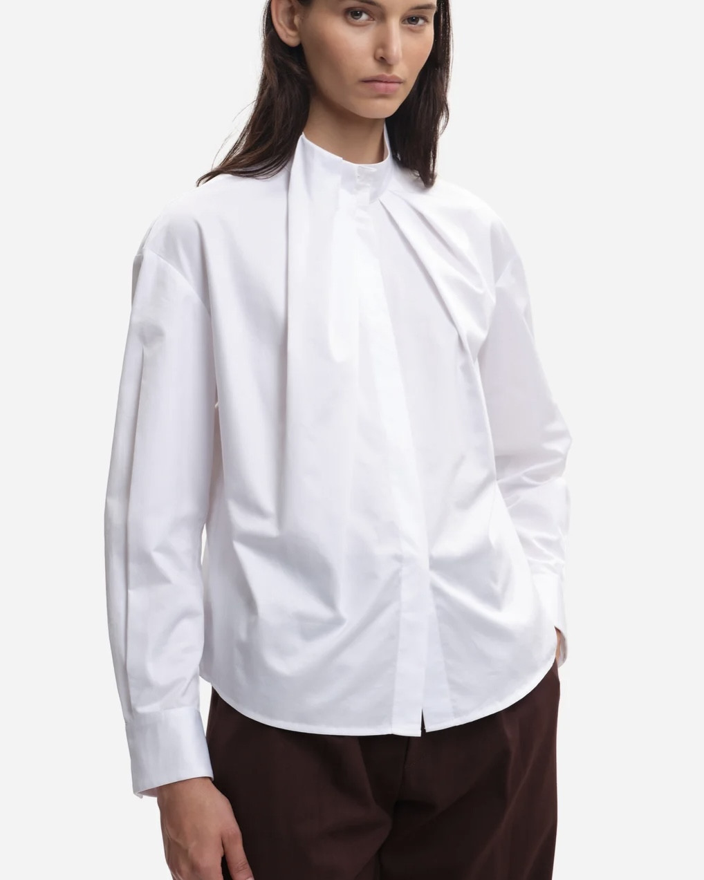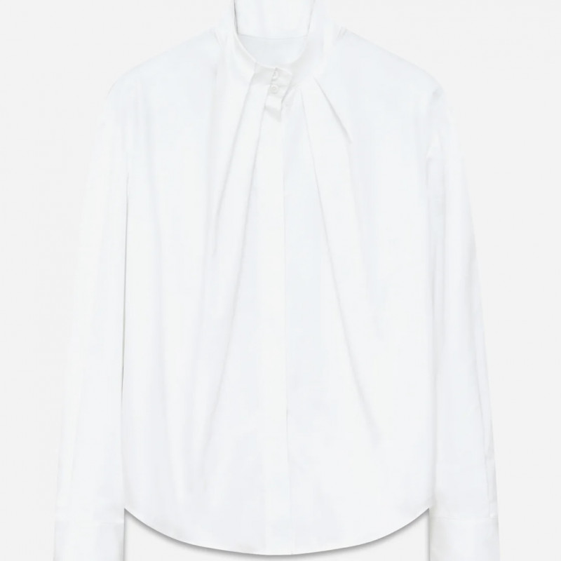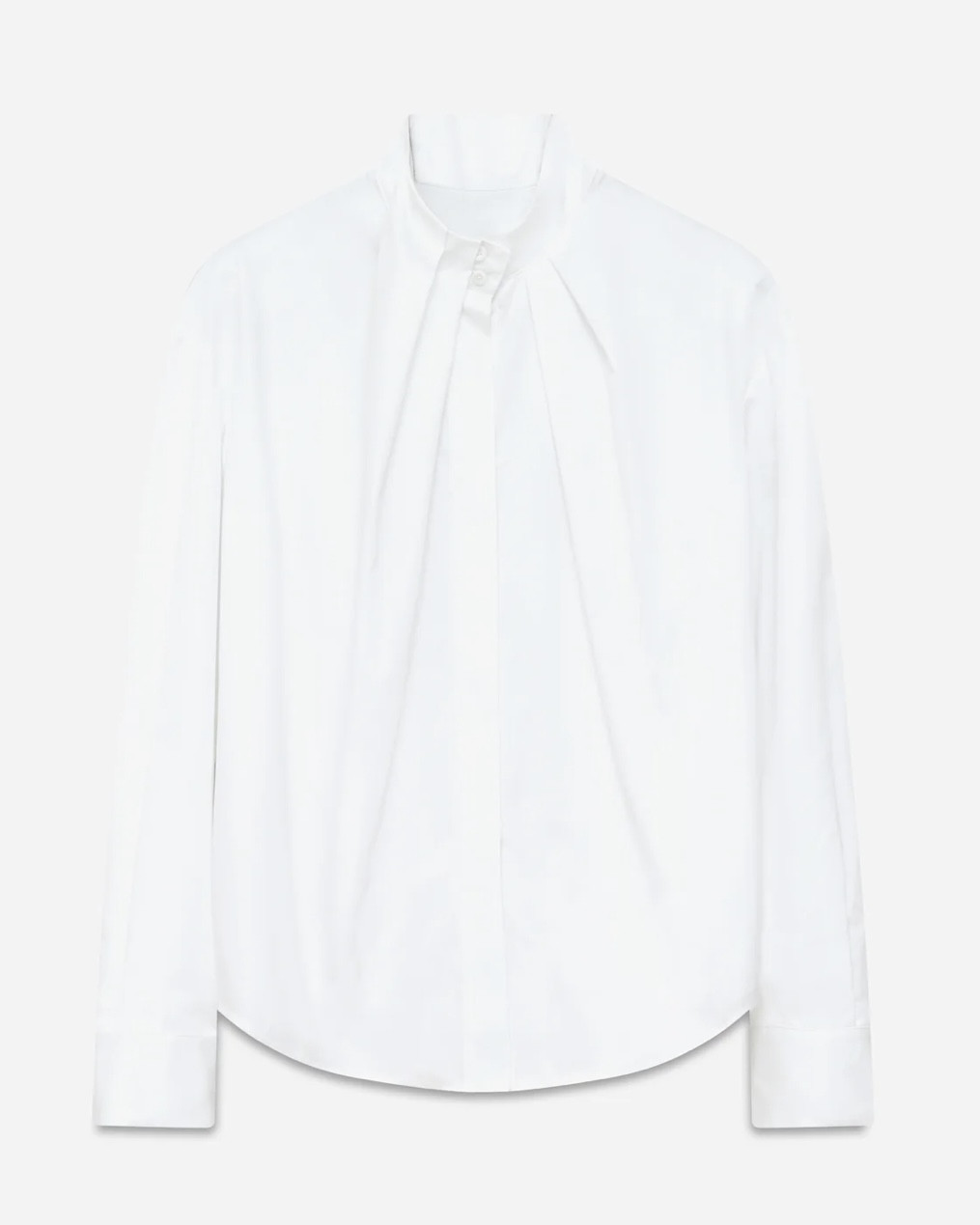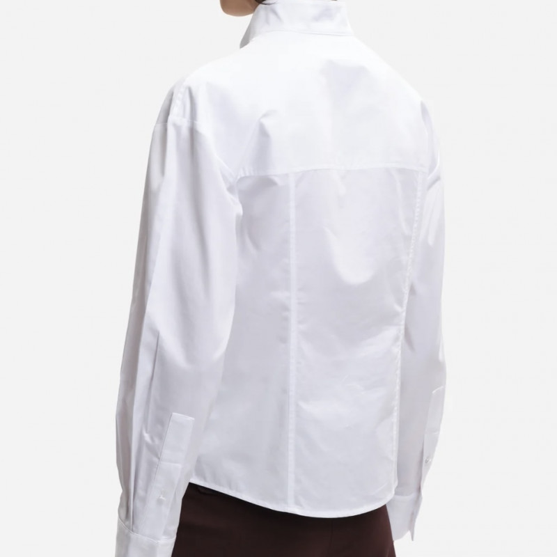 La chemise INDIA revisite l’intemporel chemisier rayé avec une coupe fluide et des détails sophistiqués. Déclinée en blanc, elle se distingue par son col rond à plis et ses finitions raffinées qui apportent une touche moderne et élégante au vestiaire.