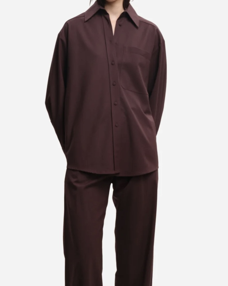 La chemise RAINS allie confort et élégance décontractée grâce à sa coupe large et fluide. Déclinée en brun profond, elle se distingue par ses finitions soignées et son allure moderne, parfaite aussi bien portée seule que superposée.