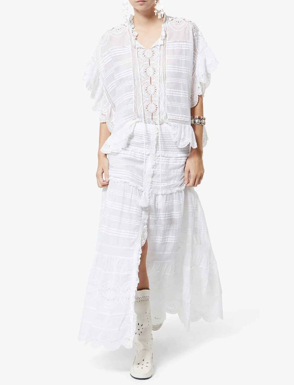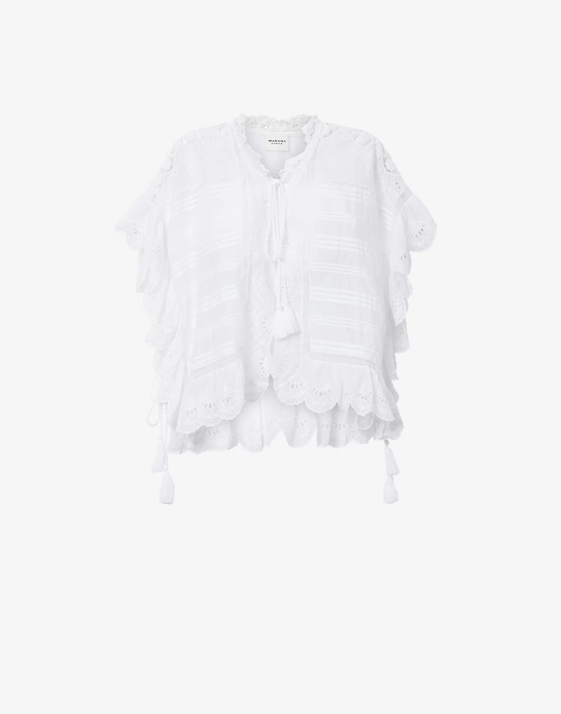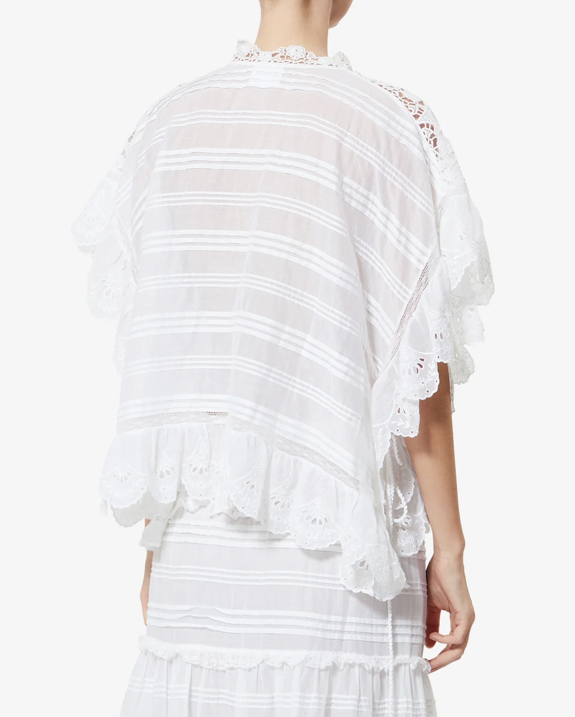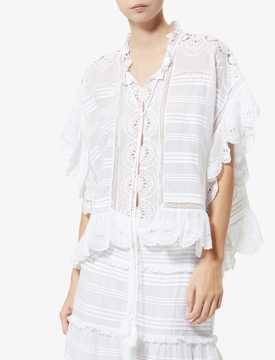 Top façon caftan en coton organique et dentelle fleurieDetails de broderies anglaises et pintucks