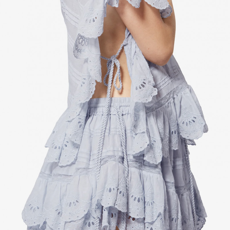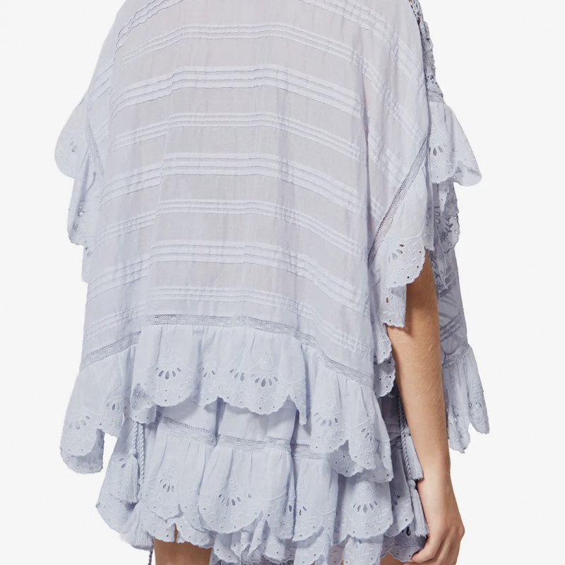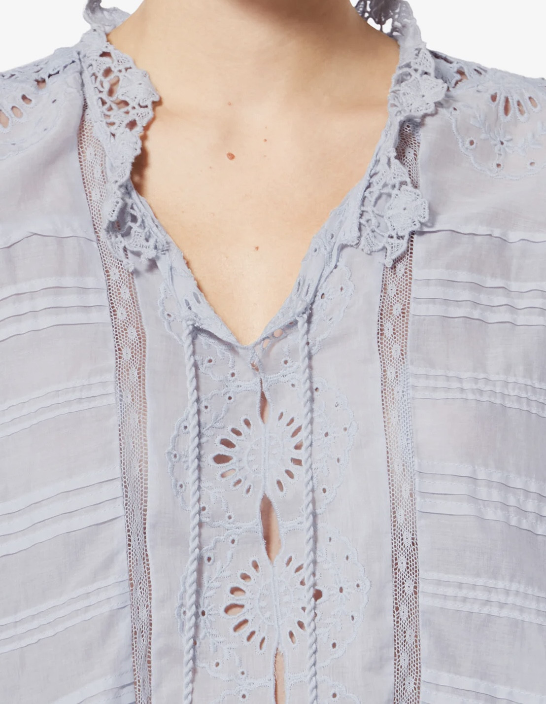Top façon caftan en coton organique et dentelle fleurieDetails de broderies anglaises et pintucks