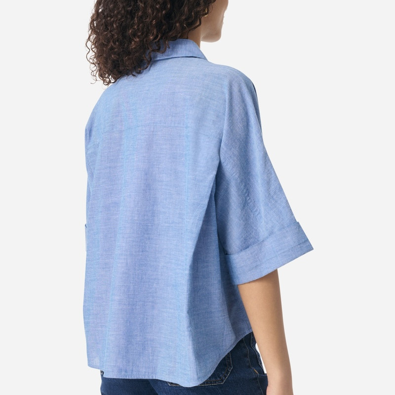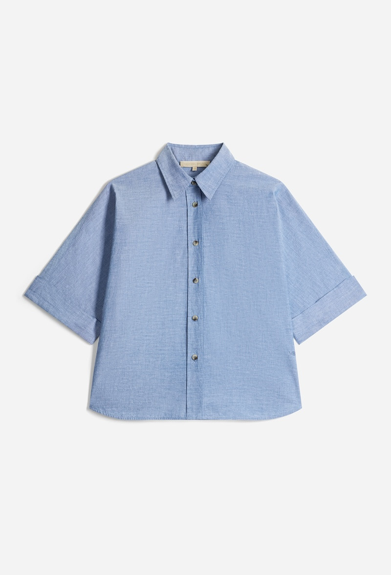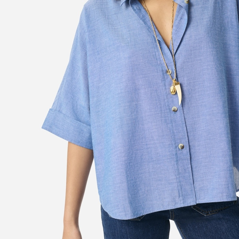 Moderne et décontractée, cette chemise courte revisite un essentiel du vestiaire avec une coupe ample. Son tombé structuré et ses manches larges lui confèrent une allure contemporaine, parfaite pour dynamiser un jean ou équilibrer une silhouette plus habillée.