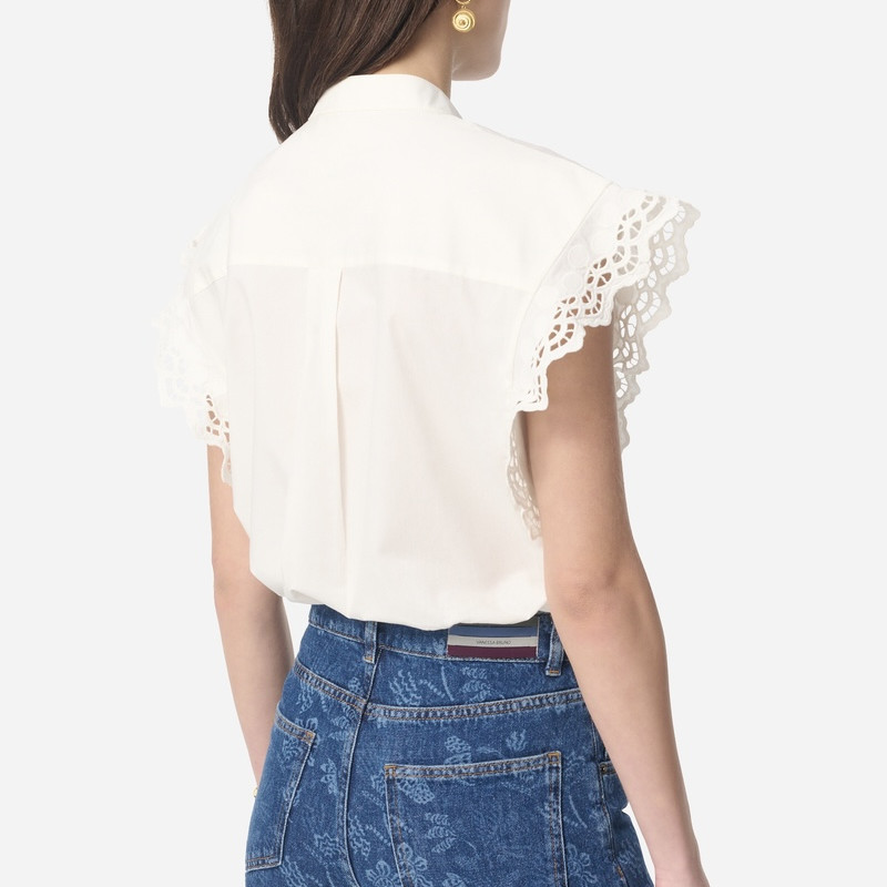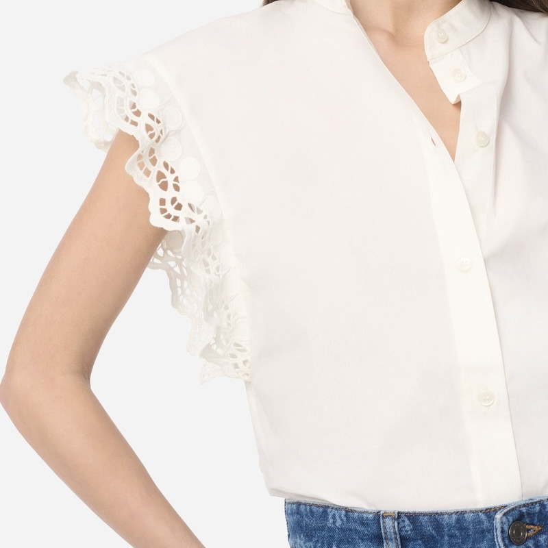 • Féminine et délicate, cette blouse légère séduit par ses manches volantées qui apportent une touche de douceur et de mouvement à la silhouette.