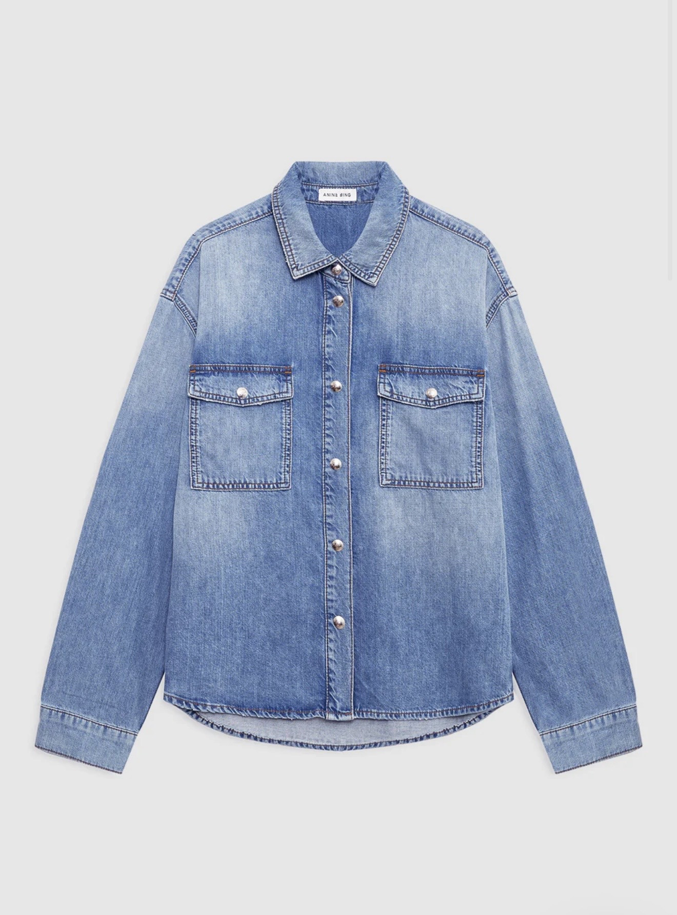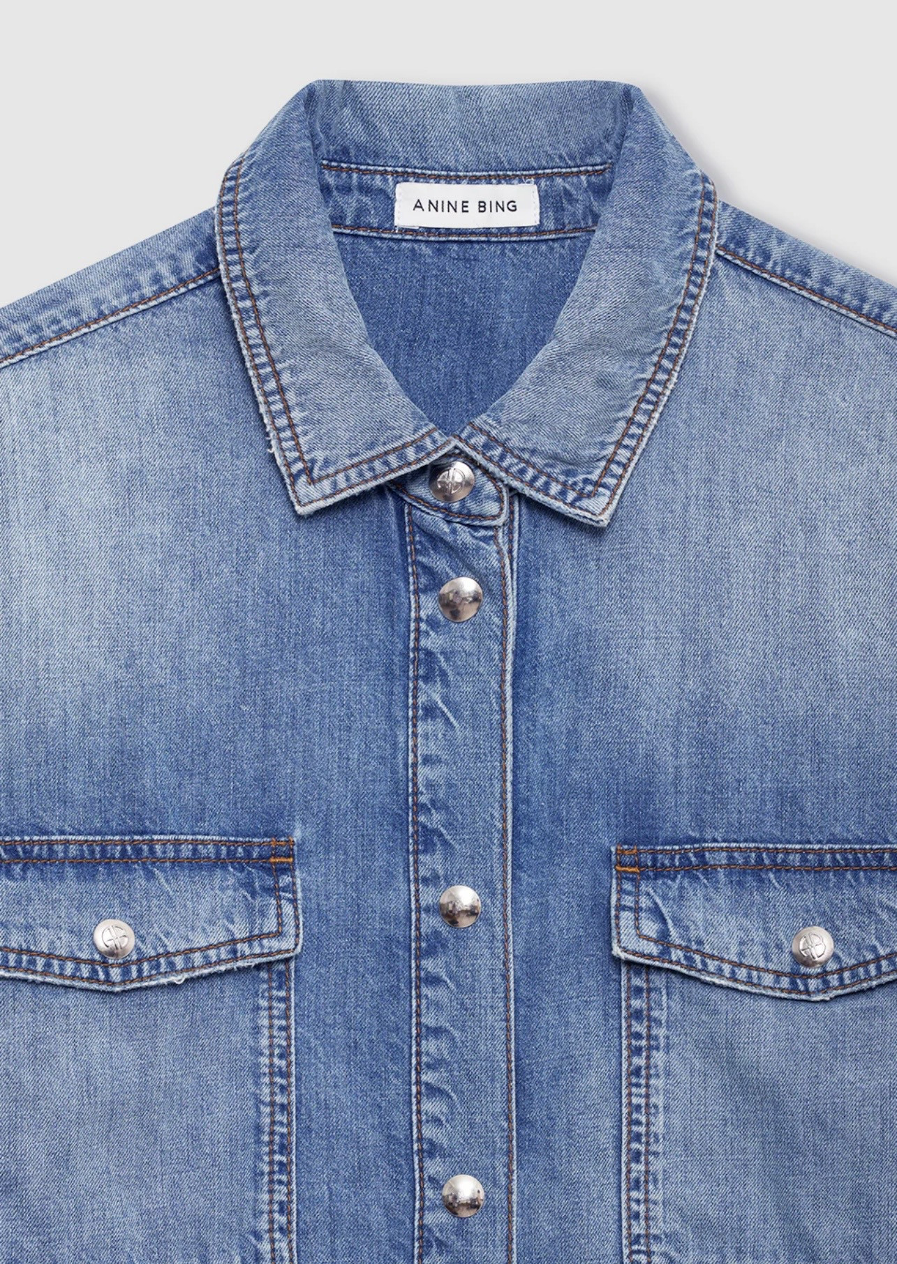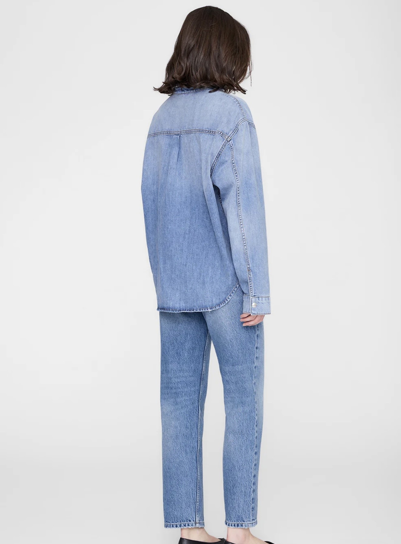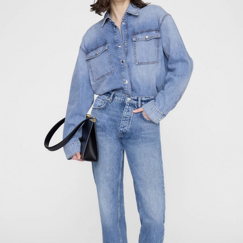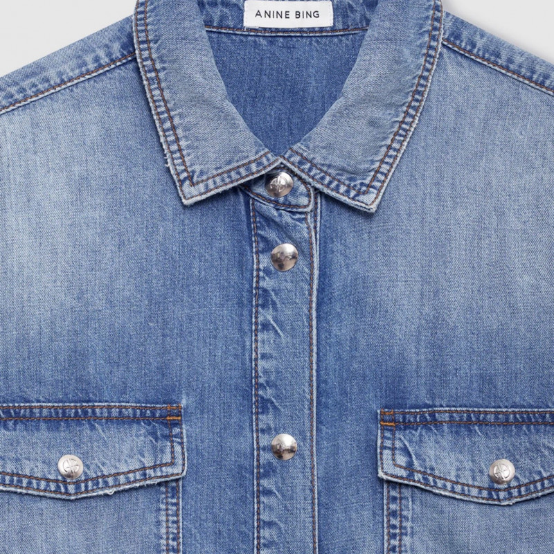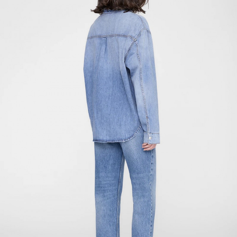 Une chemise vintage inspirée des vêtements de travail construite à partir d’un denim en coton rigide de poids moyen dans un délavage indigo moulé délavé.