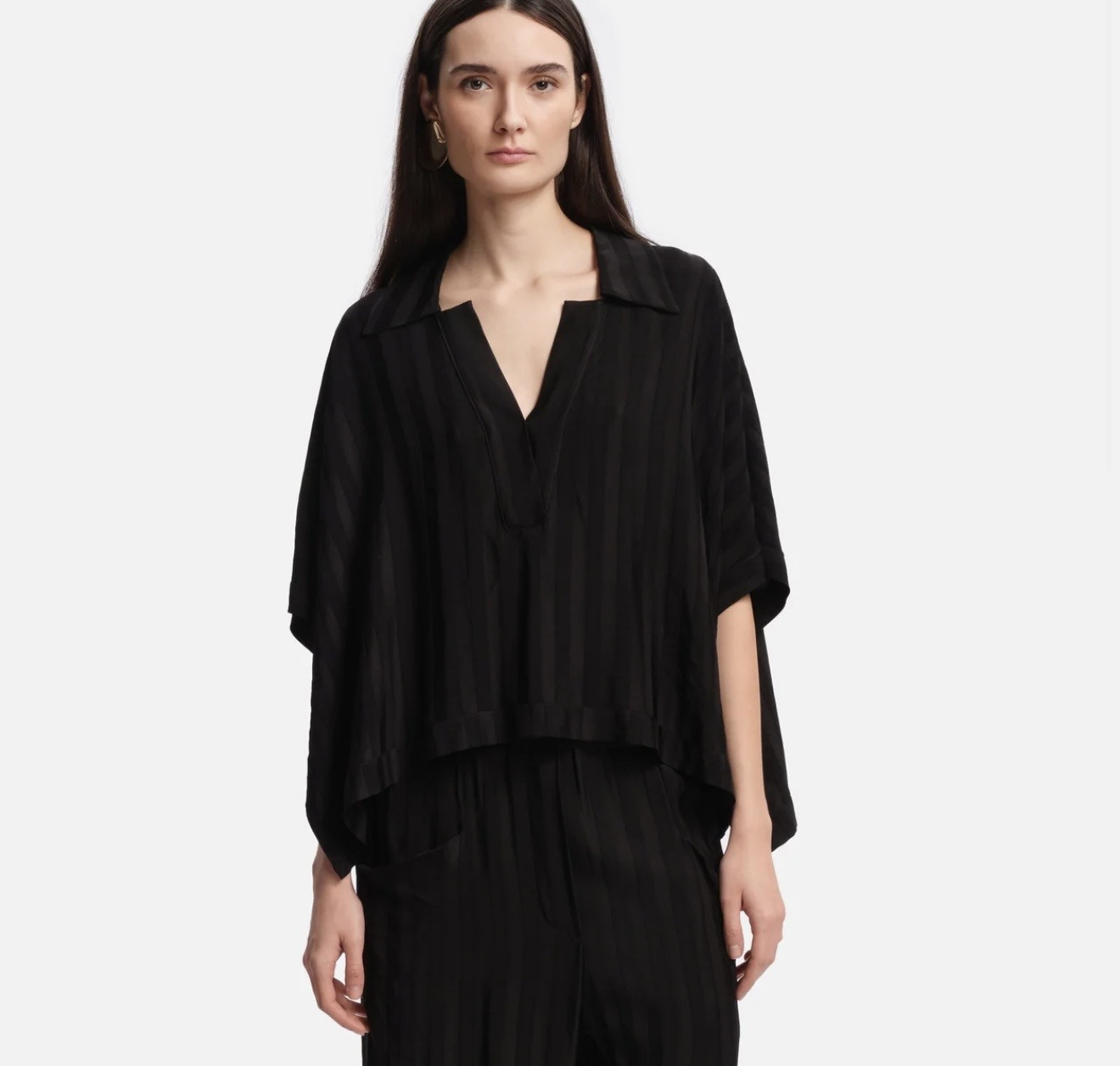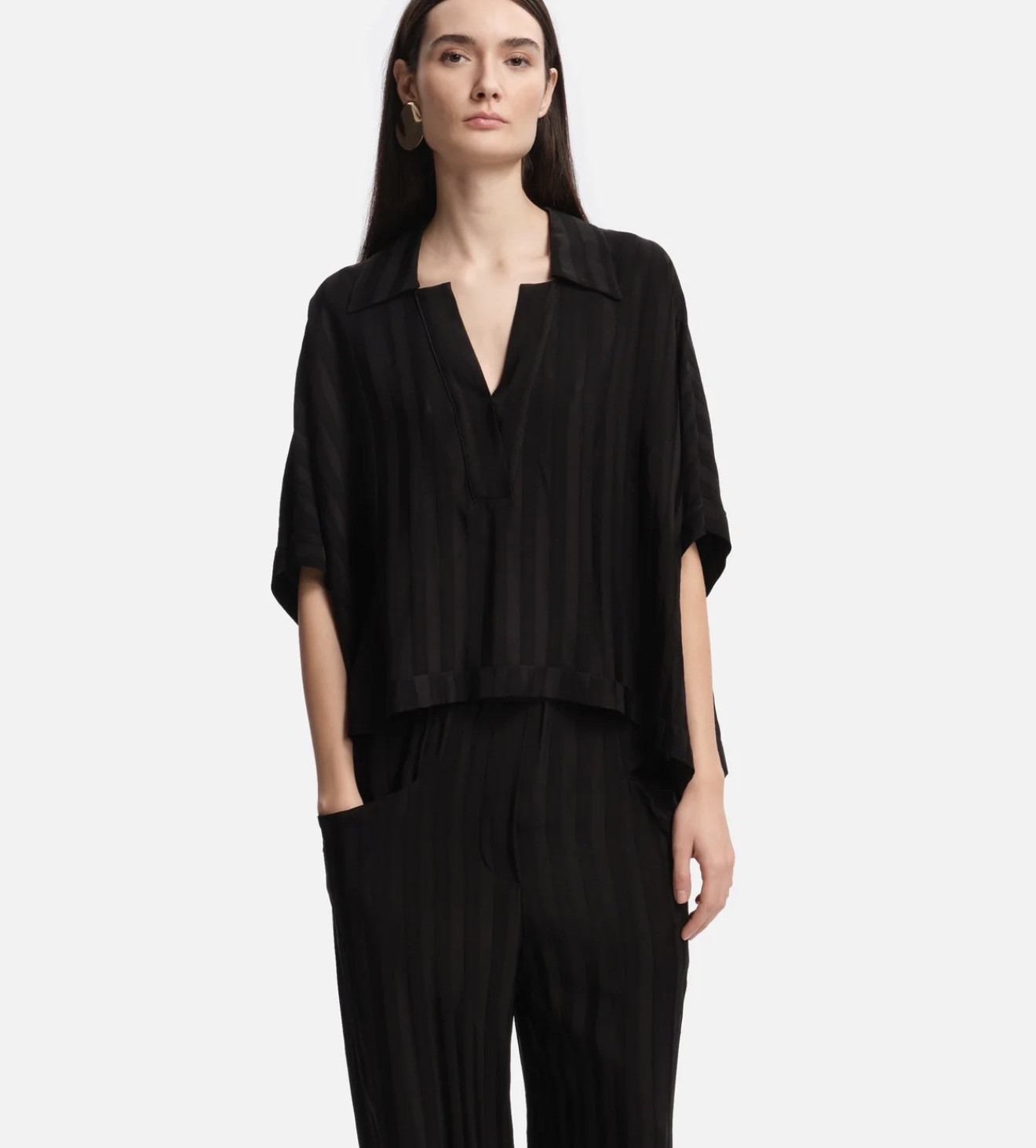 Le top Vally se distingue par sa coupe fluide et son tombé léger. Il se porte aussi bien seul qu’avec le pantalon assorti pour un look facile et moderne.