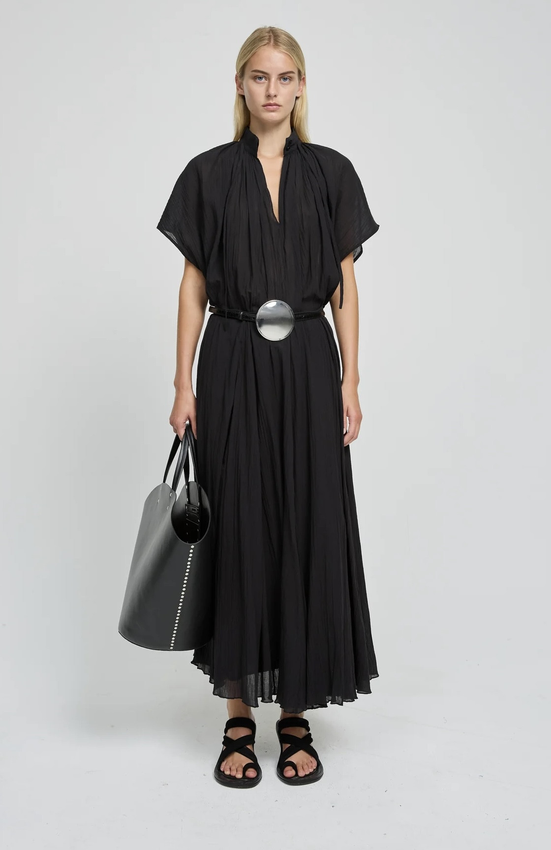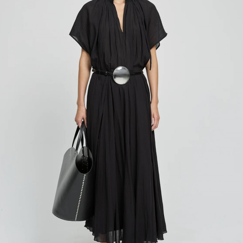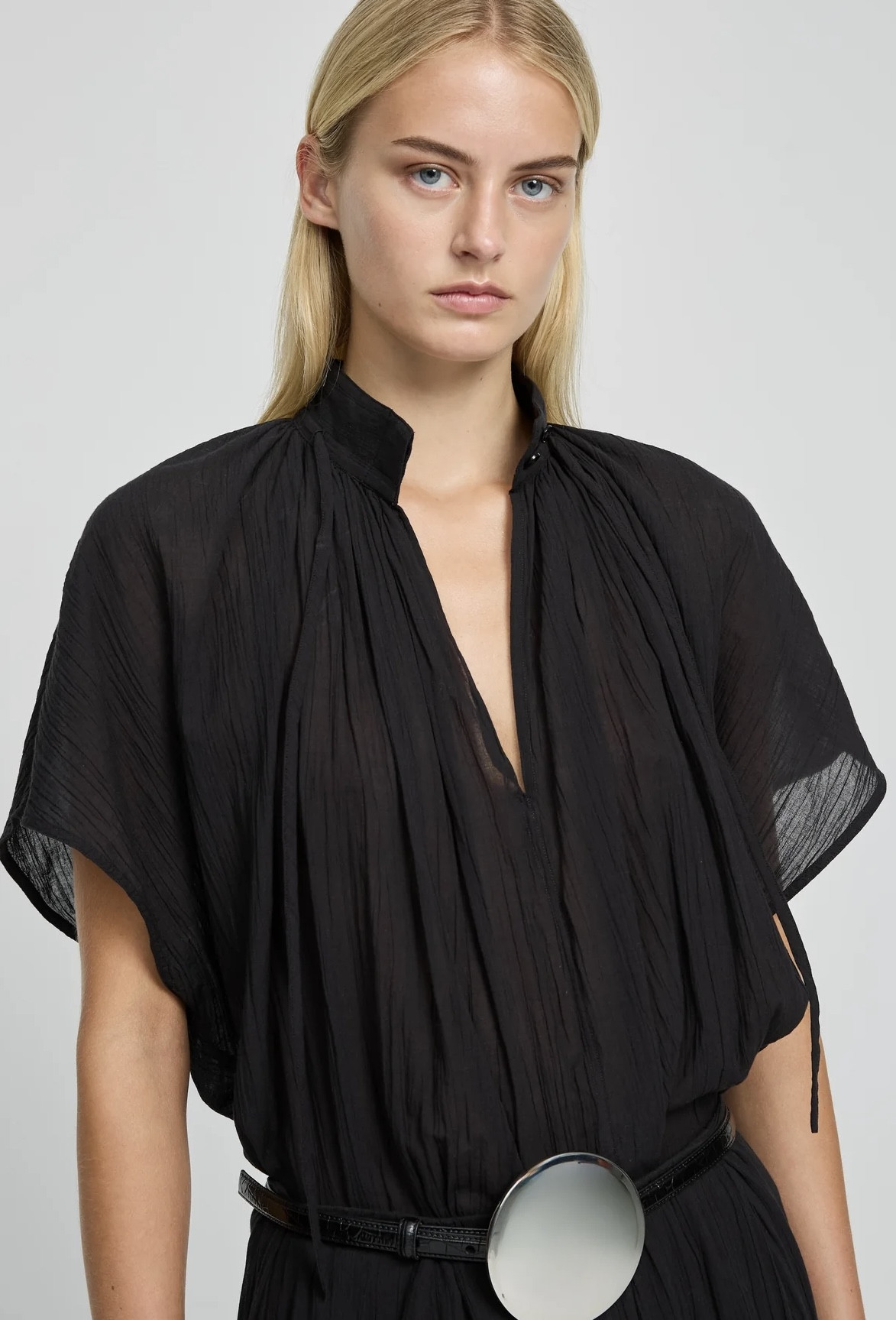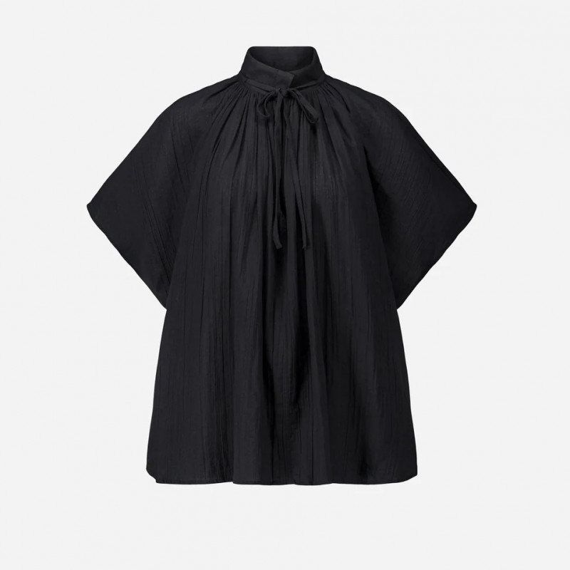 Col montant avec lien qui resserre l’encolure et boutons