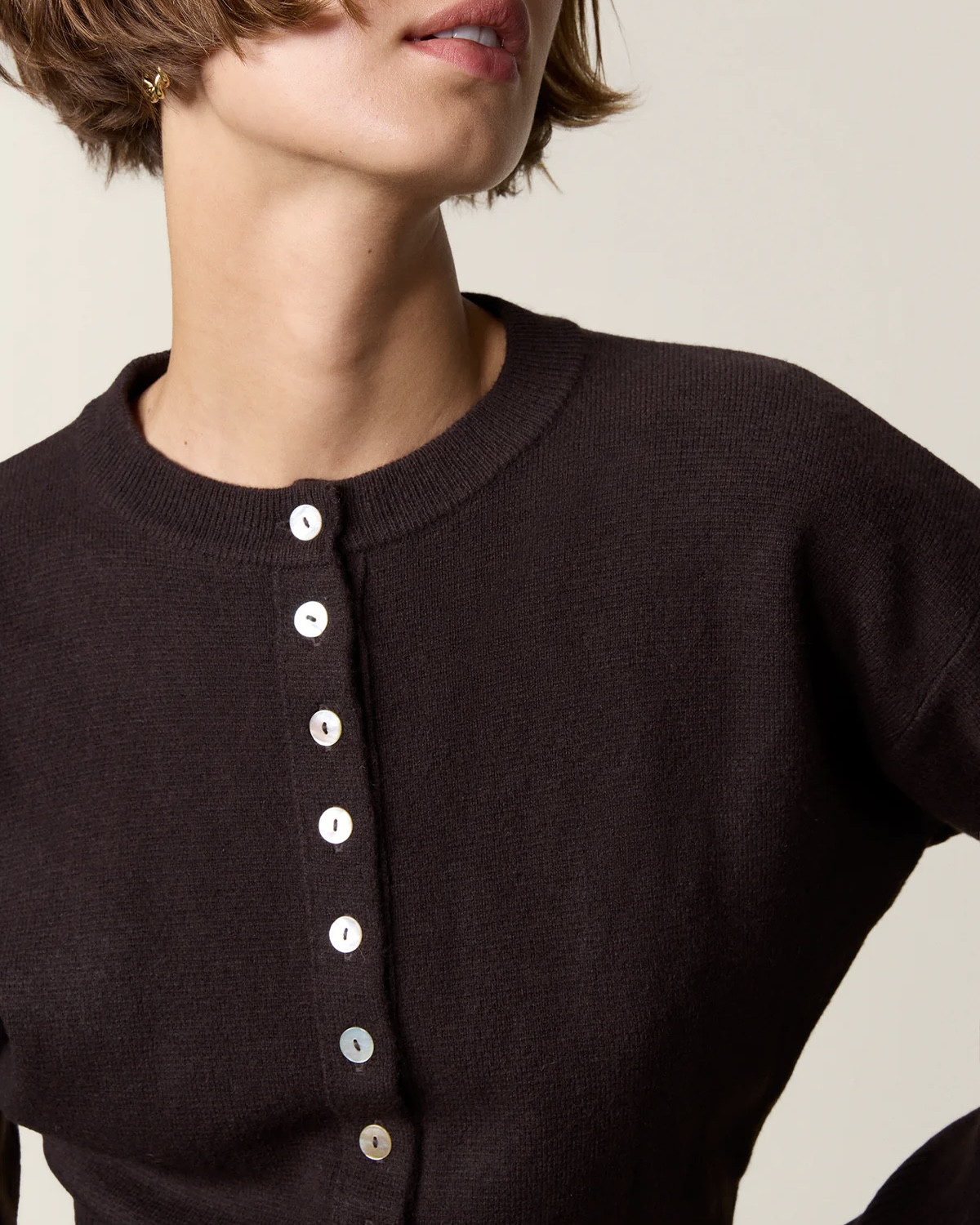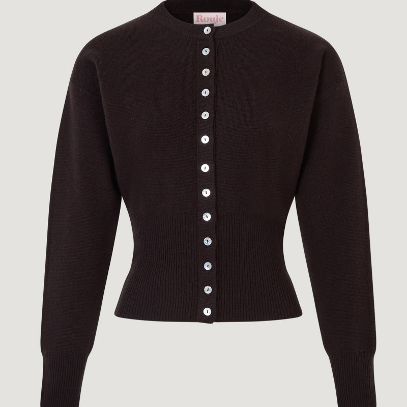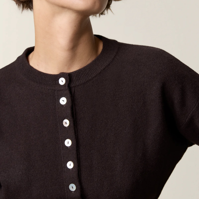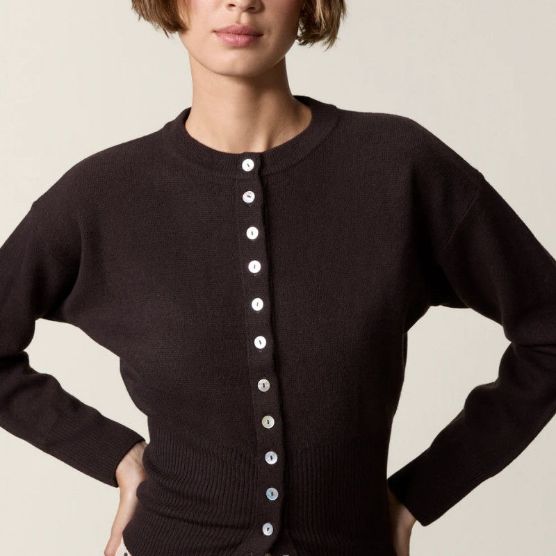 Cardigan ajusté boutonné en laine mérinos.