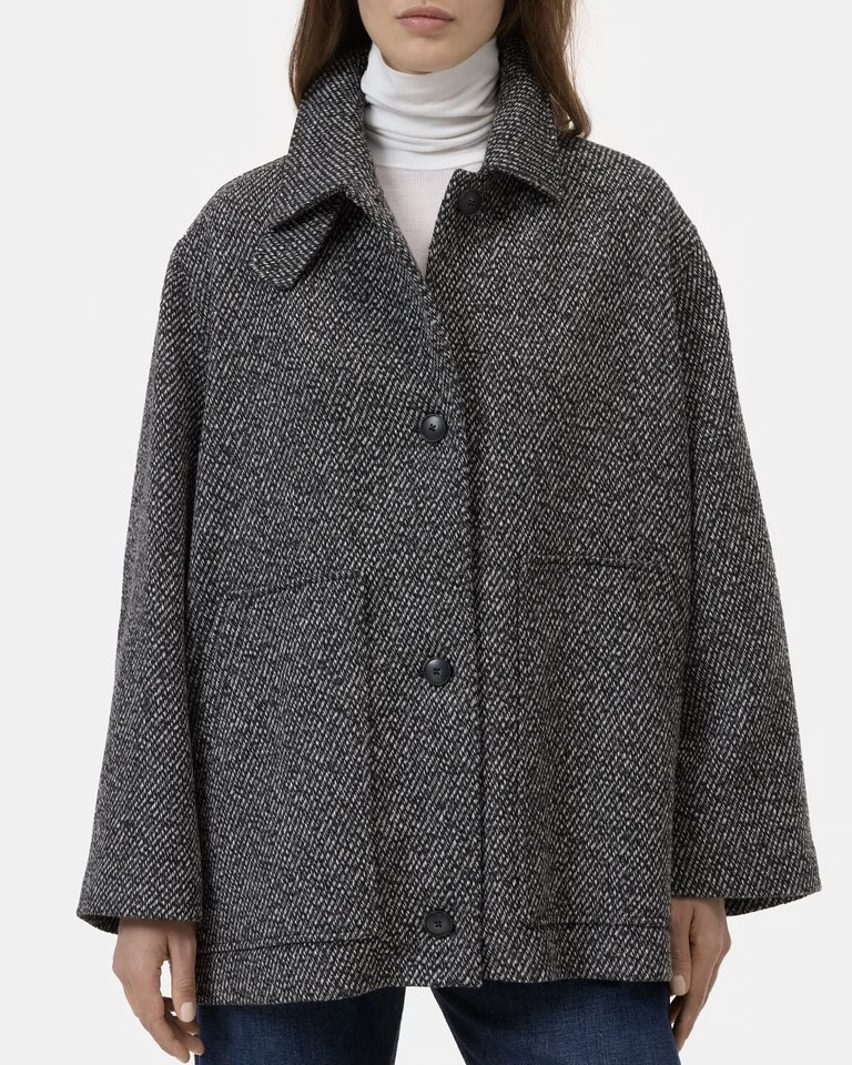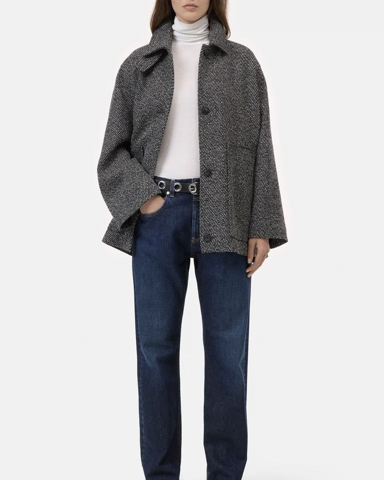 Ce manteau court est confectionné en twill de laine mélangée texturé avec des fils moulinés bicolores et 60 % de laine recyclée. Coupe classique et silhouette décontractée, idéal pour superposer les couches. Avec patte de col boutonnée, poche intérieure, doublure en viscose et étiquette logo dans la nuque.