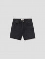 Short en denim noir lavé avec moustaches et ourlet propre