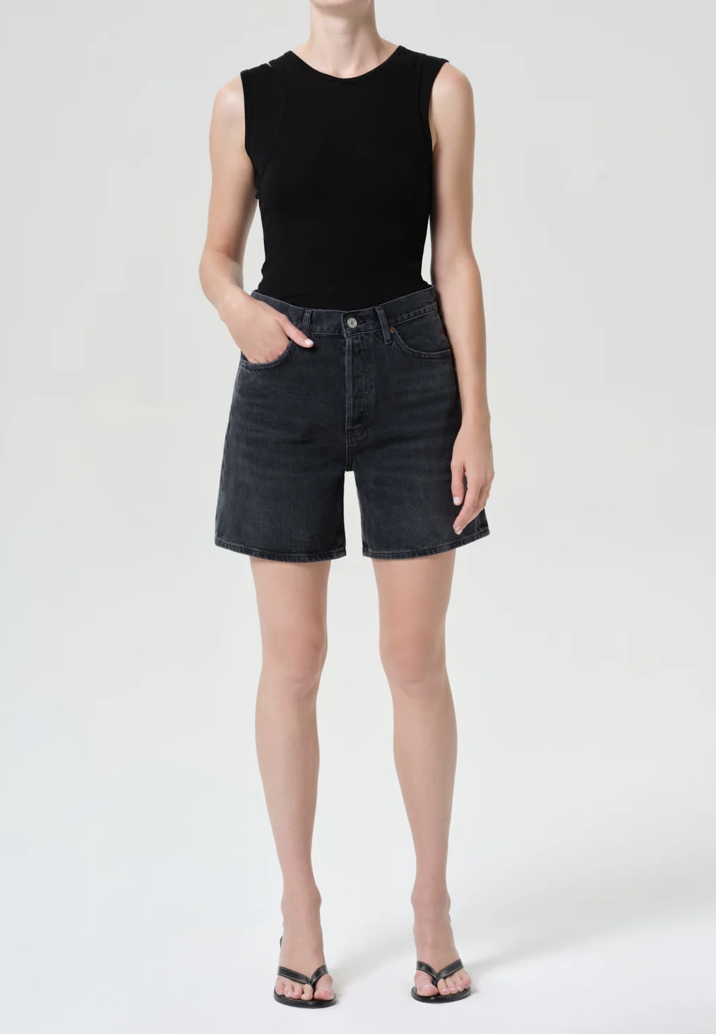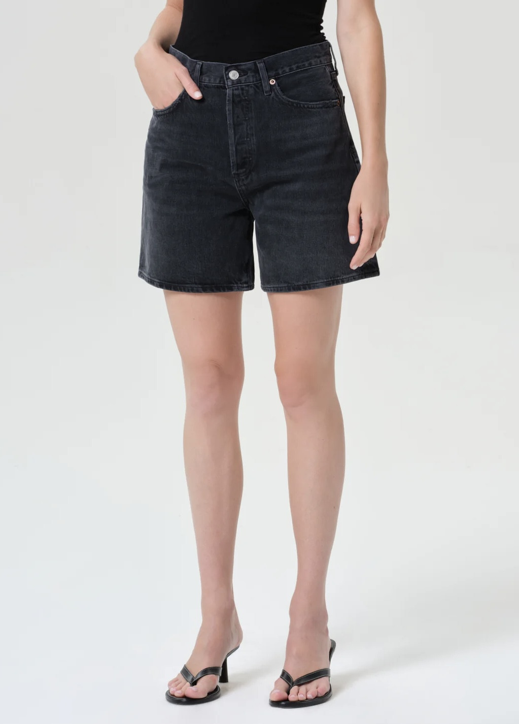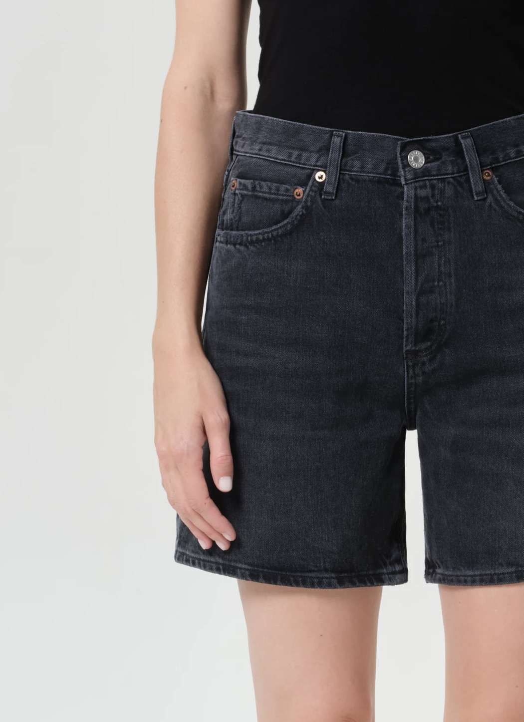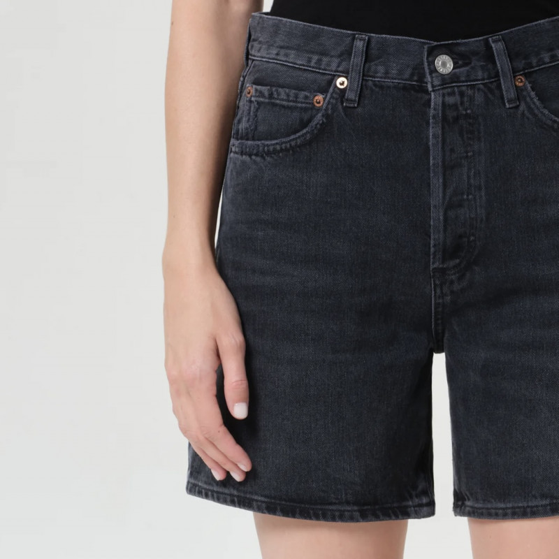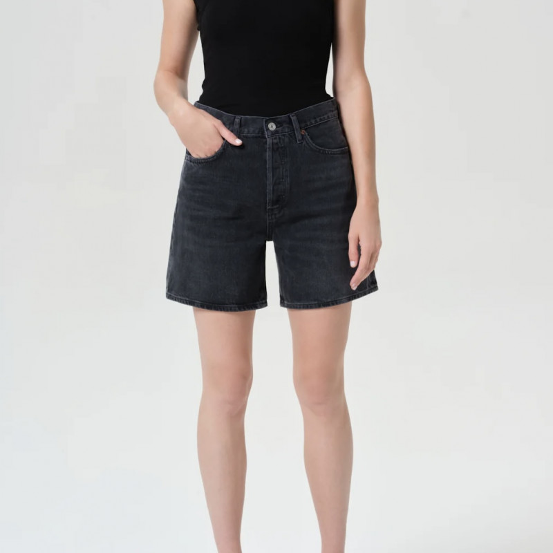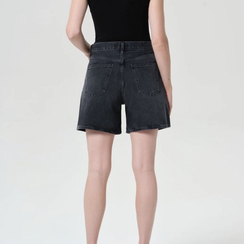 Le short Dame est fabriqué en denim noir lavé avec des moustaches subtiles, lui donnant une sensation vintage usée. Doté d’une coupe haute, d’une silhouette décontractée et d’une large ouverture de jambe, ce short offre un équilibre parfait entre confort et style. L’ourlet propre ajoute une touche polie, ce qui les rend idéaux pour être associés à un débardeur simple ou à une chemise surdimensionnée pour un look frais et sans effort par temps chaud.