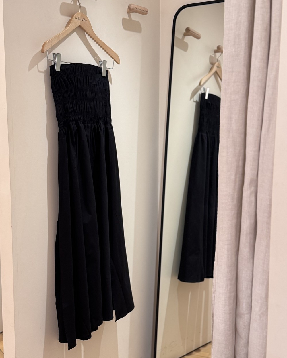 Jupe longue ou robe Bustier. Smocks au niveau du buste/taille. Fentes sur les côtés.