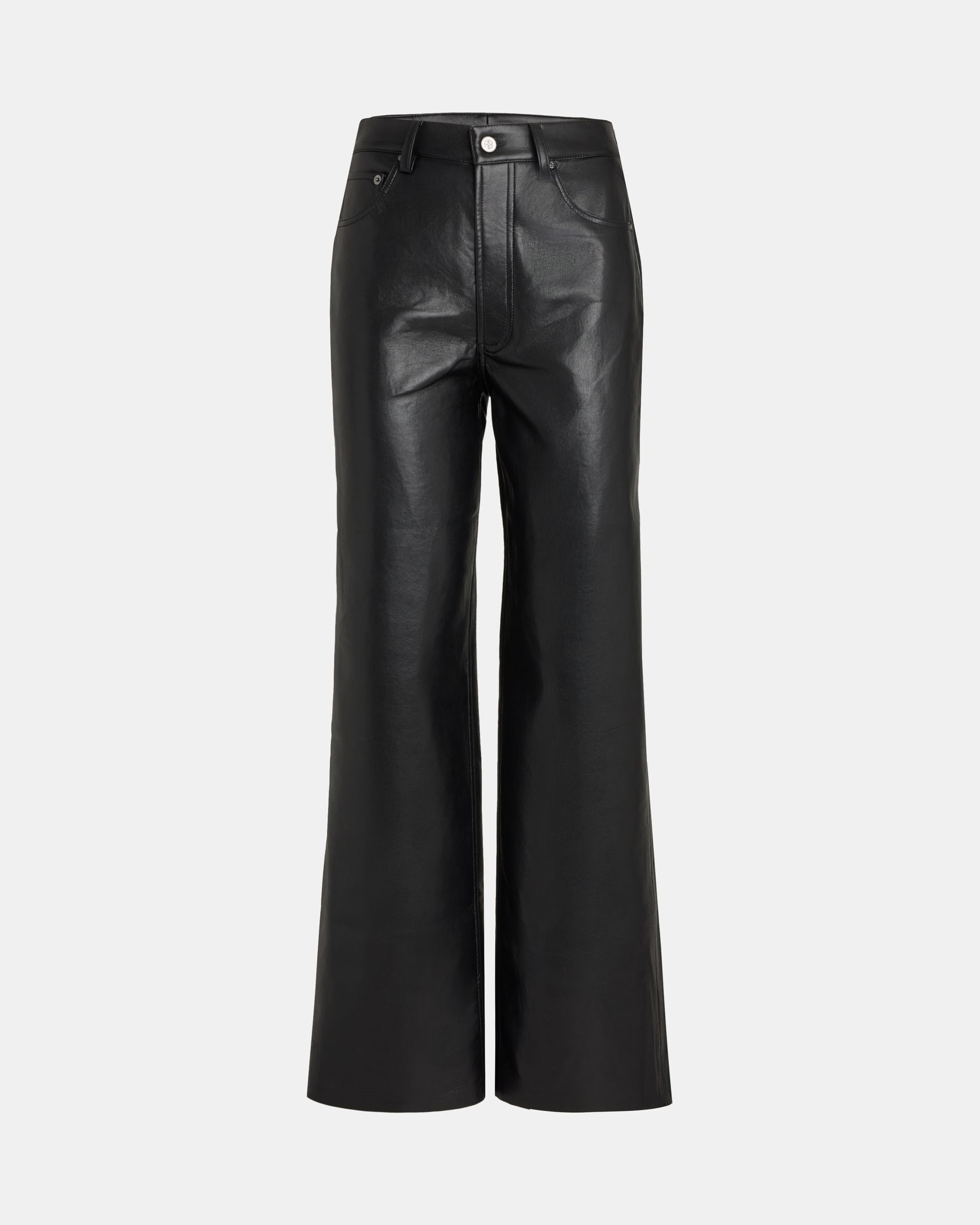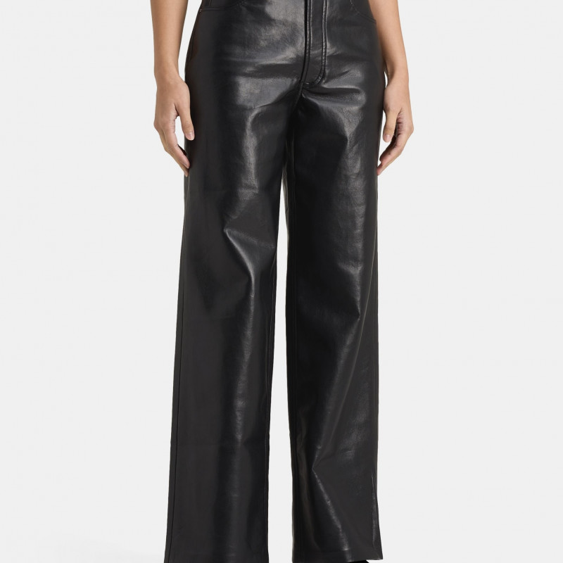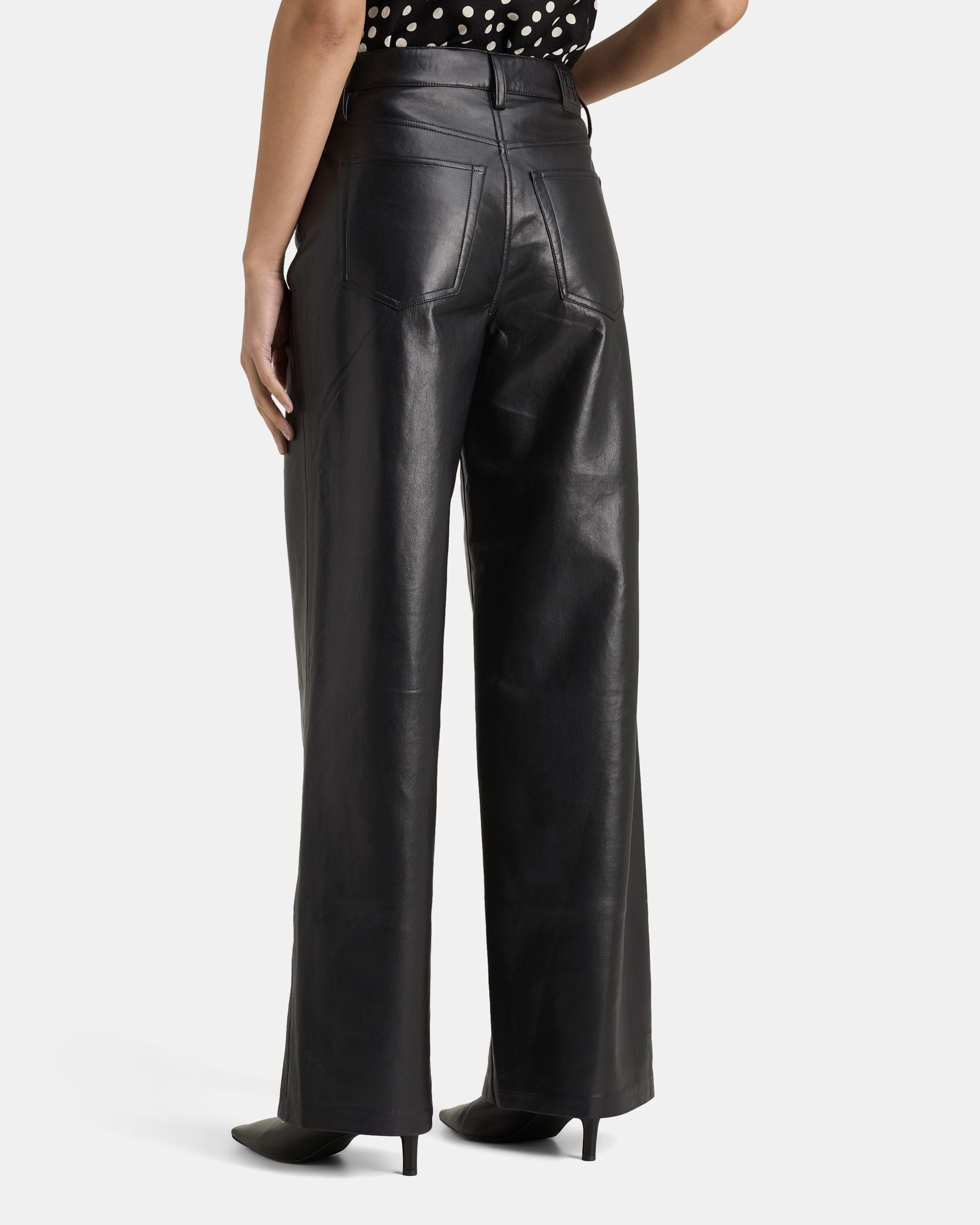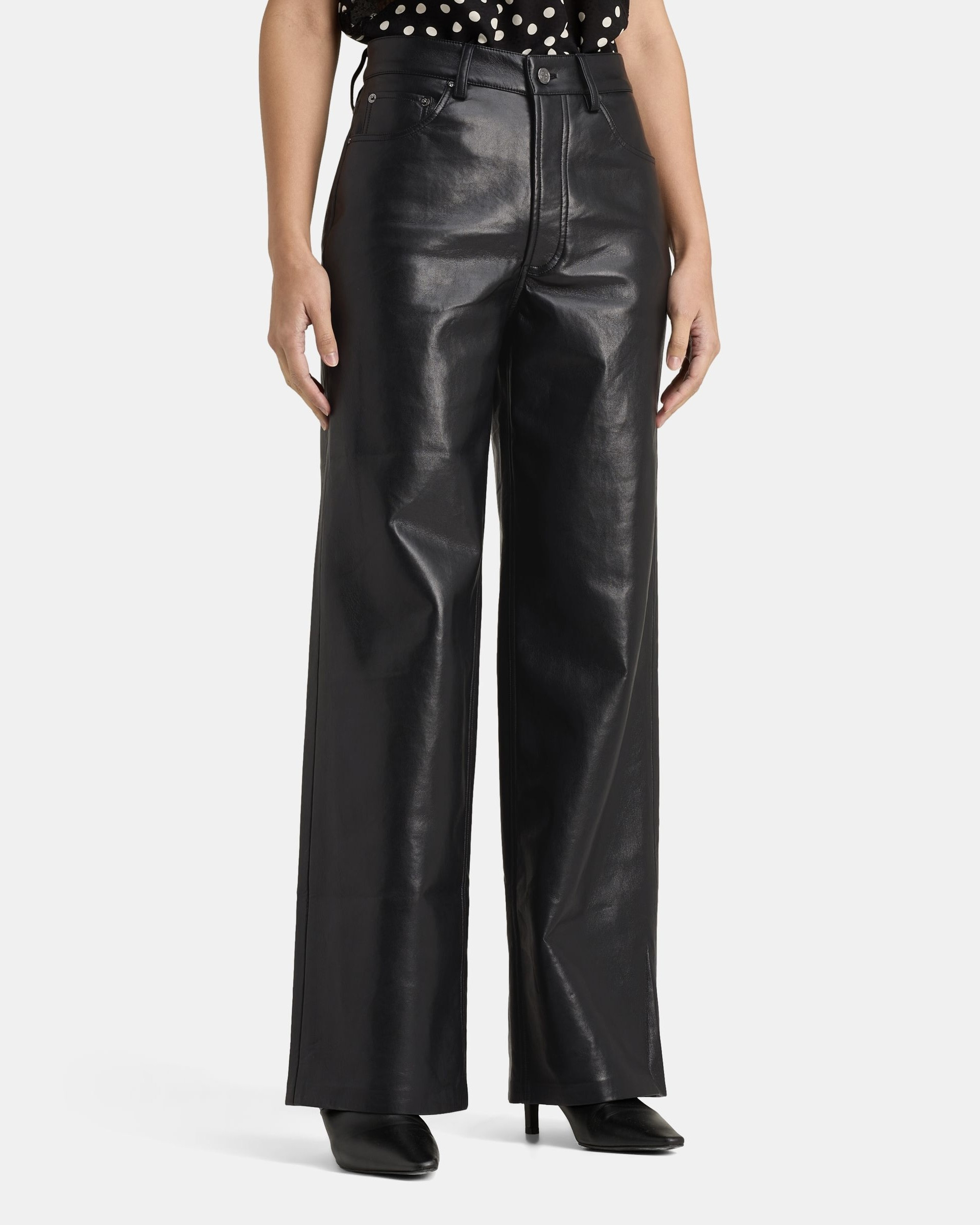 Pantalon en cuir recyclé. Taille haute. Coupe large.