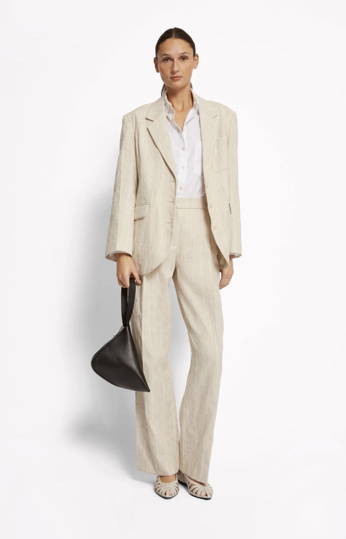 Une coupe tailoring, plis en dessous de ceinture, fermeture par zip et crochet ainsi que des poches italiennes.