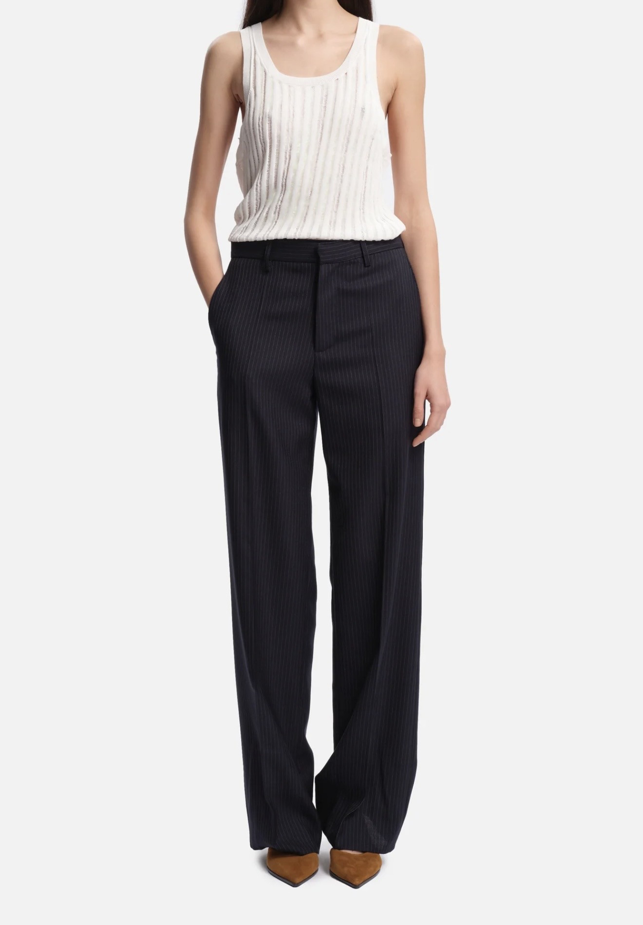 Le pantalon Sherman, taille mi-haute et coupe droite, offre un tombé net pour une silhouette raffinée et polyvalente.