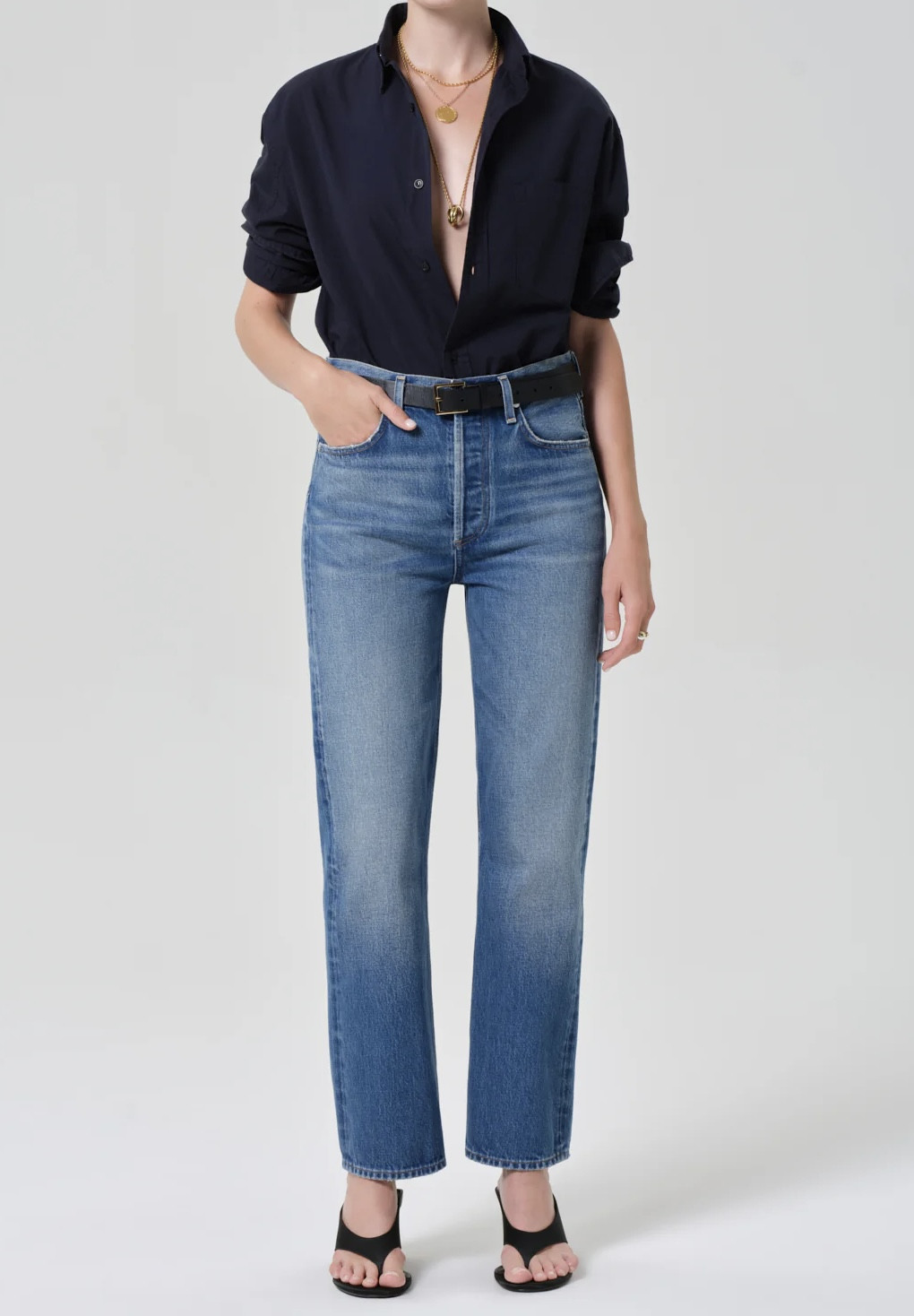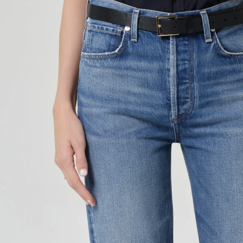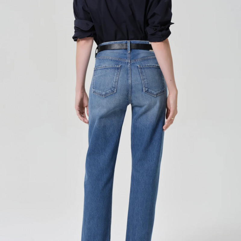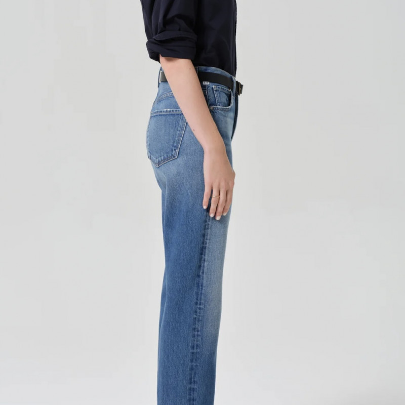 Le ‘Blaine’ est une jambe droite d’inspiration vintage à grande hauteur avec un entrejambe long de la cheville et une structure sans effort. Le lavage « Jonie » est un indigo moyen avec des moustaches douces, fabriqué à partir de denim en coton régénératif non extensible qui est lavé pour une sensation légère et ultra-douce. Style avec un tailoring décontracté ou une maille fine pour un look de tous les jours relevé.
