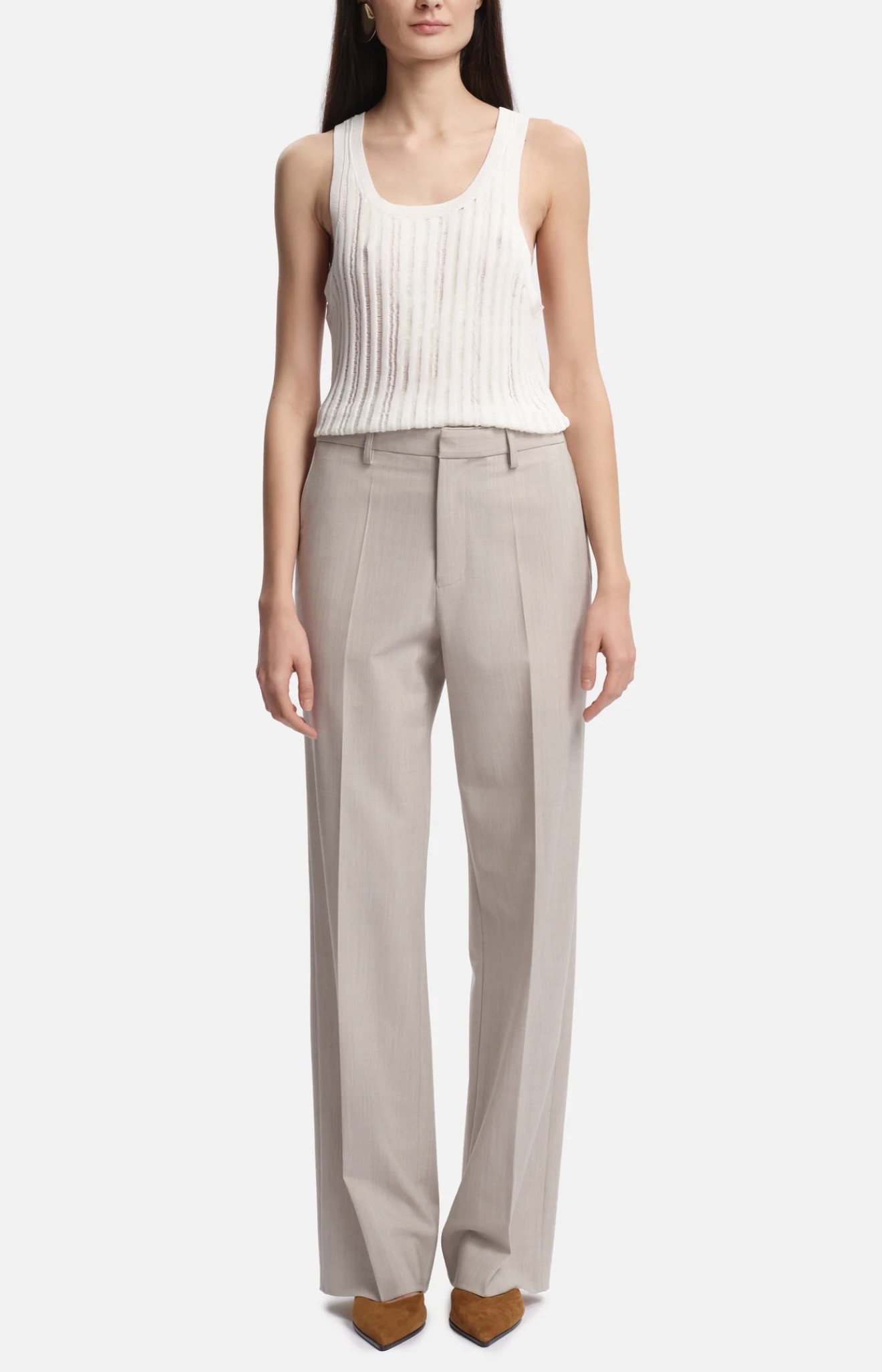 Le pantalon Sherman, taille mi-haute et coupe droite, offre un tombé net pour une silhouette raffinée et polyvalente.