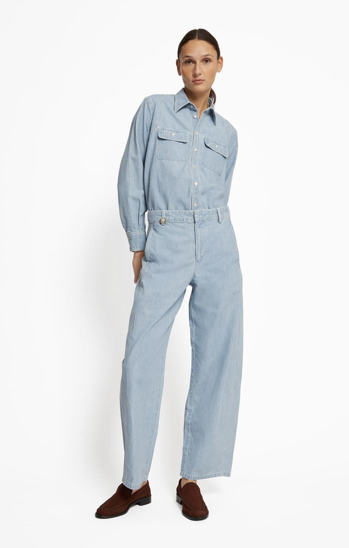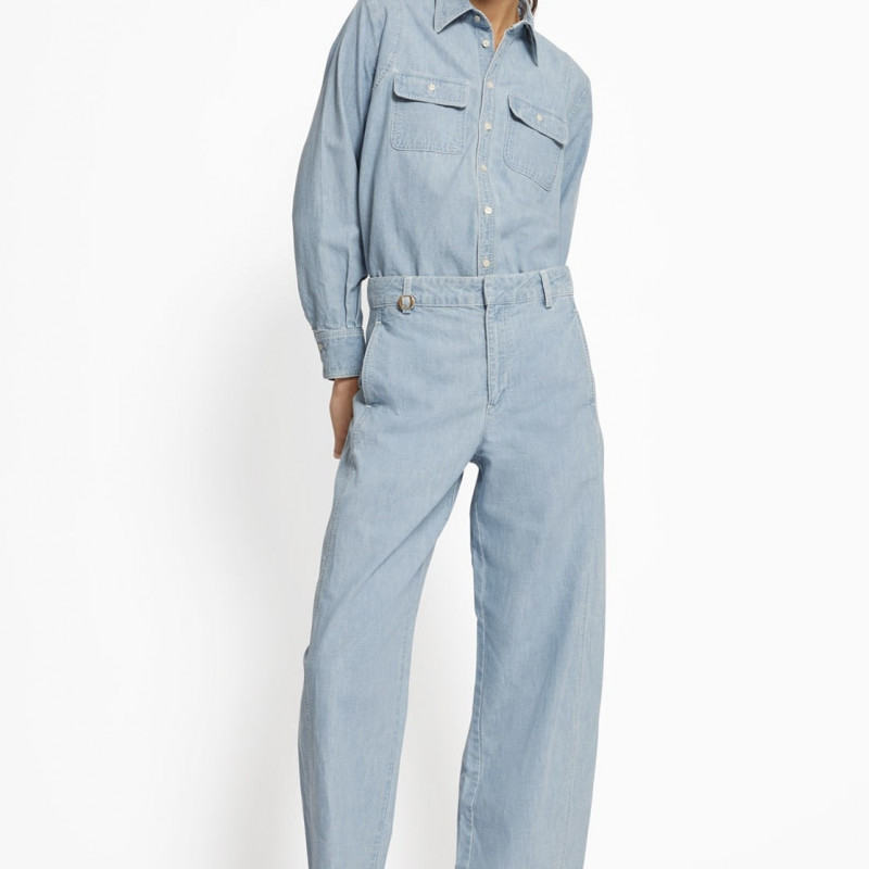 Pantalon en coton Roseanna, modèle LOU, coloris Bleu.