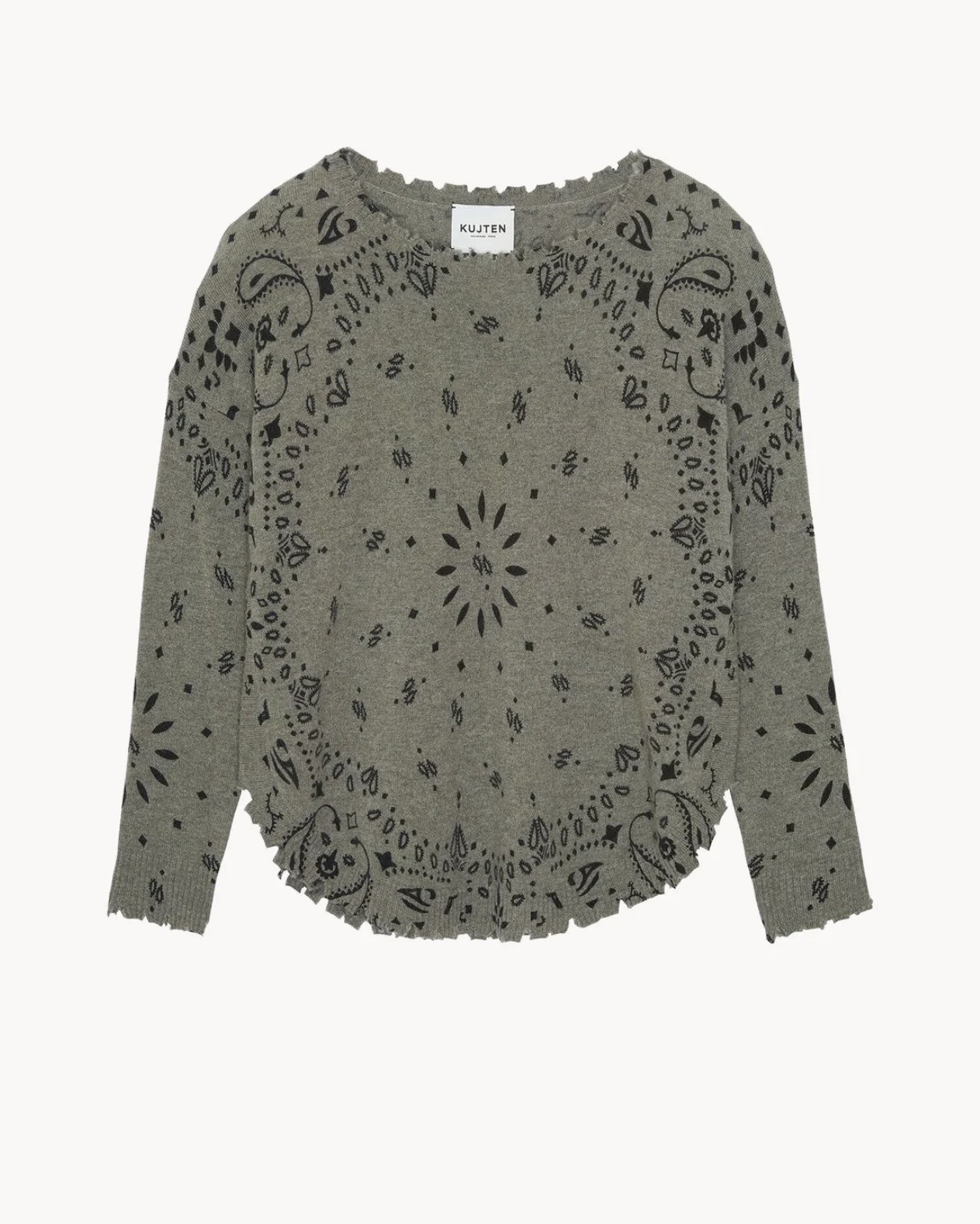 - Pull Cachemire Col Rond Imprimé, 2 fils 100% cachemire