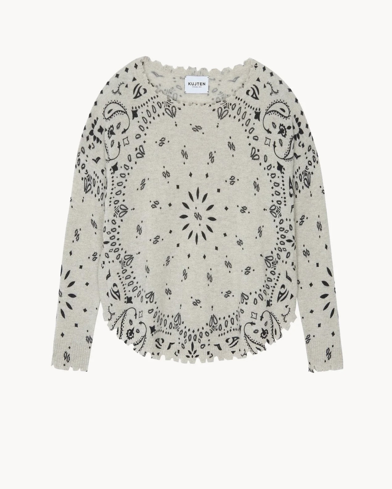 • Pull Cachemire Col Rond Imprimé, 2 fils 100% cachemire