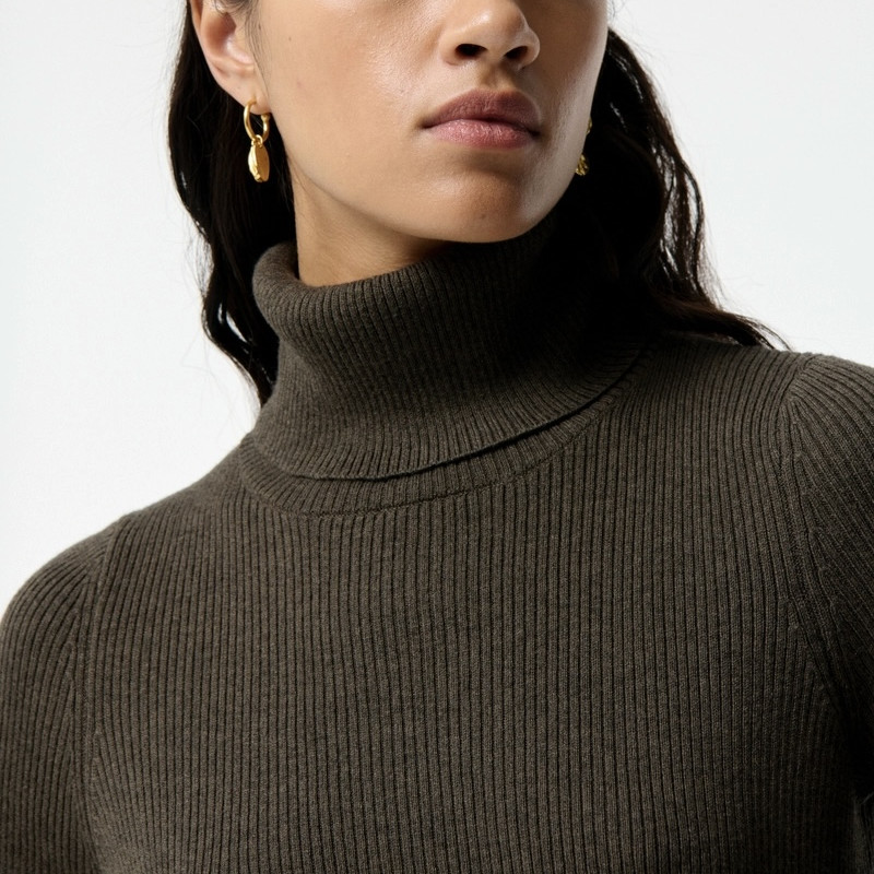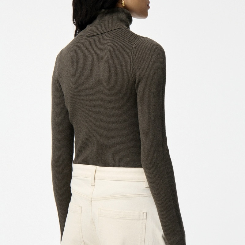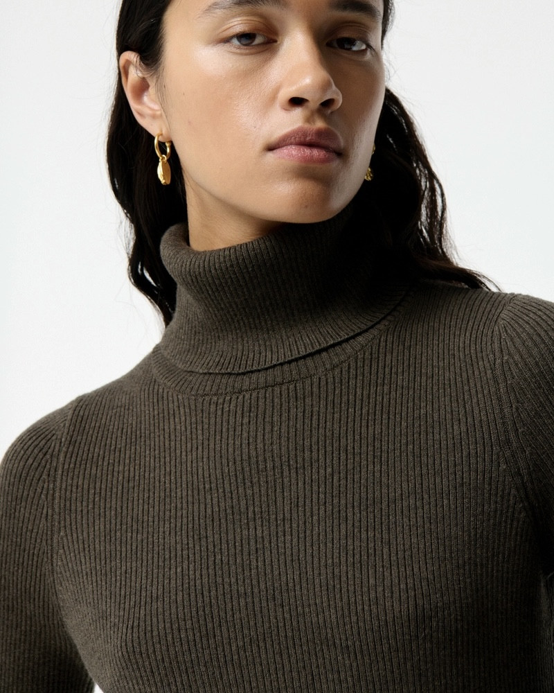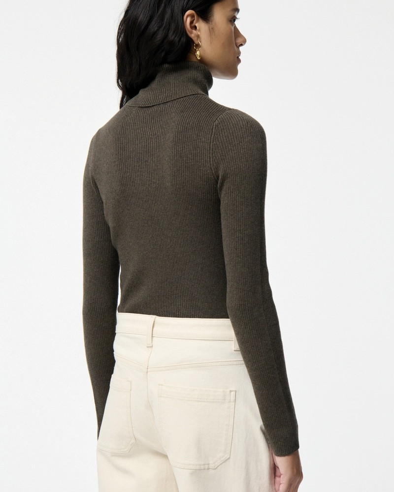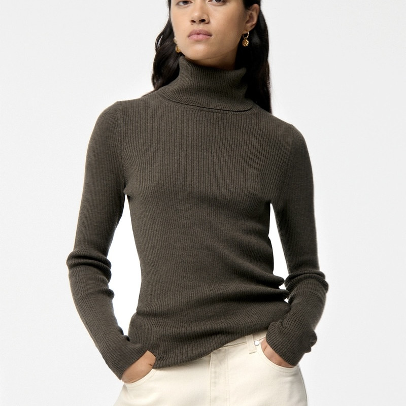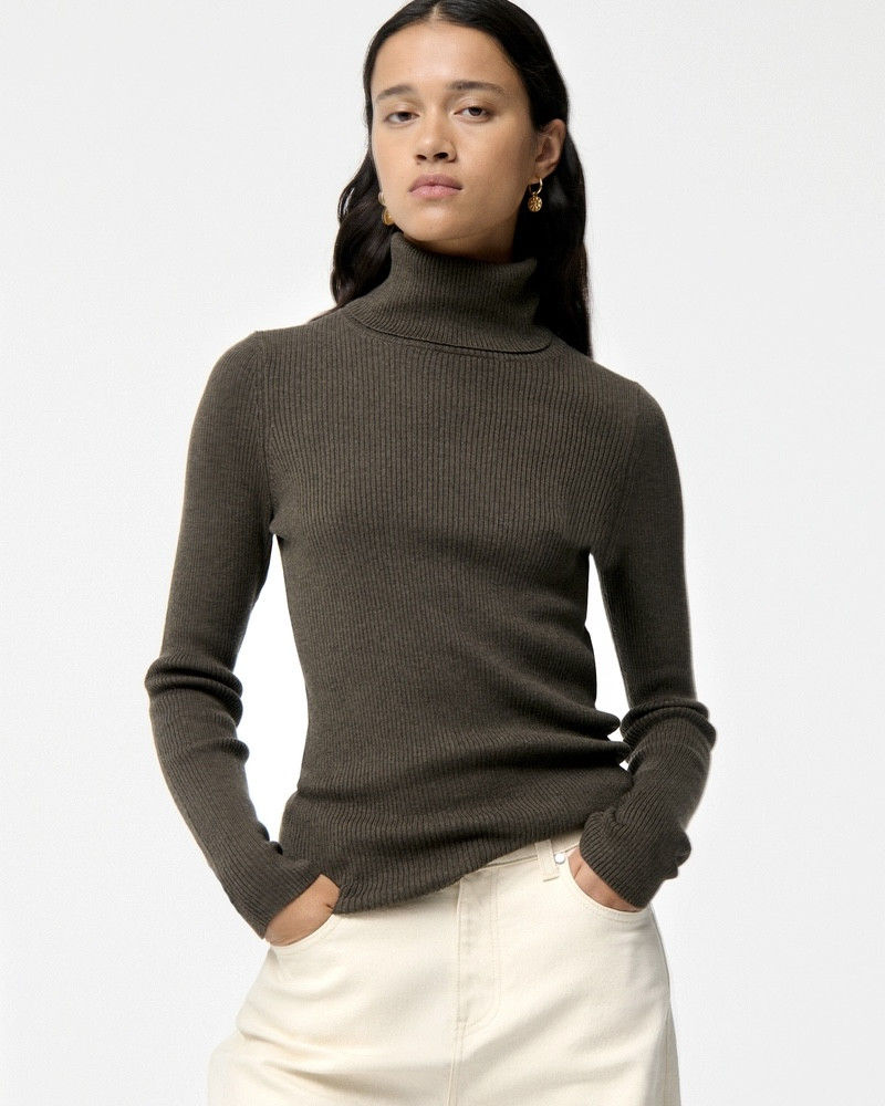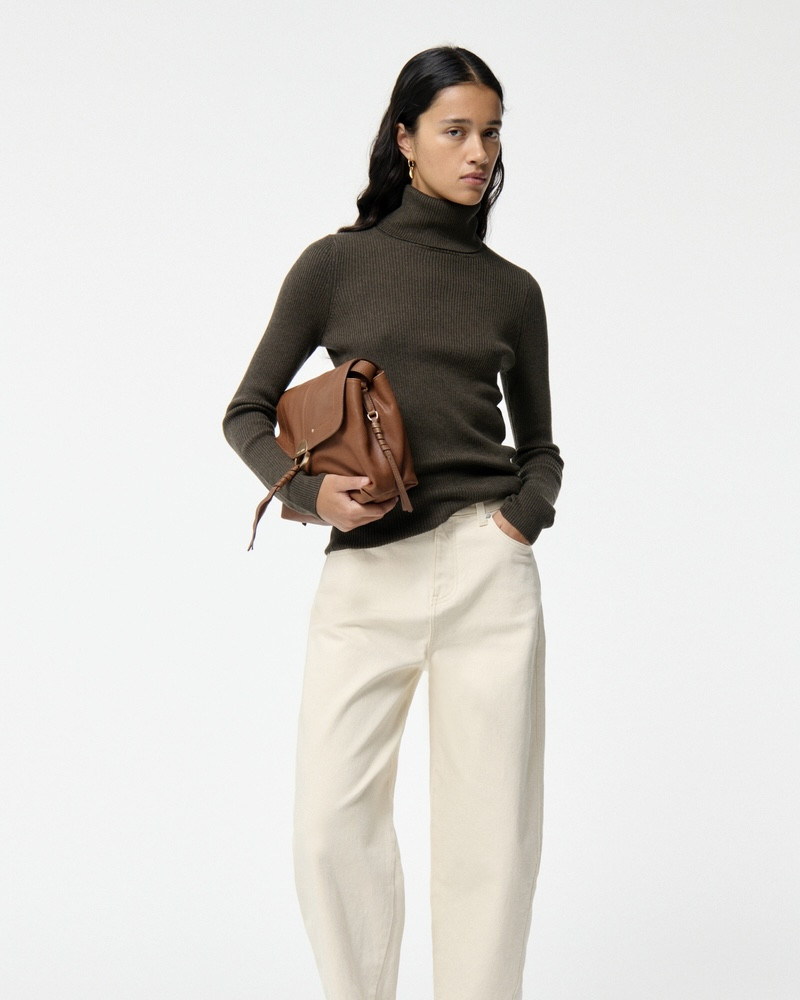 Minimaliste et essentielle, cette maille à col roulé dessine une silhouette sobre et féminine.