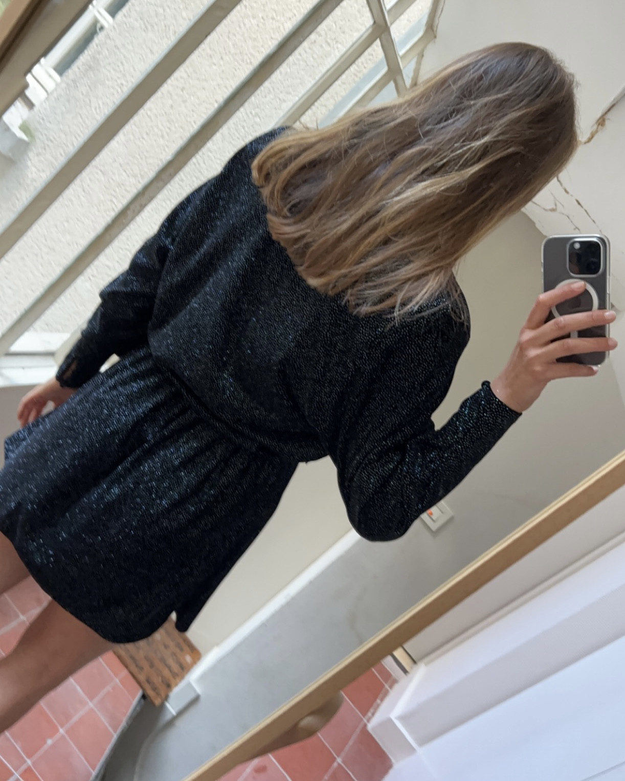 La robe parfaite pour les fêtes, à reporter cet hiver en décalant le style habillé avec une grosse maille et des baskets.