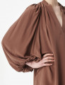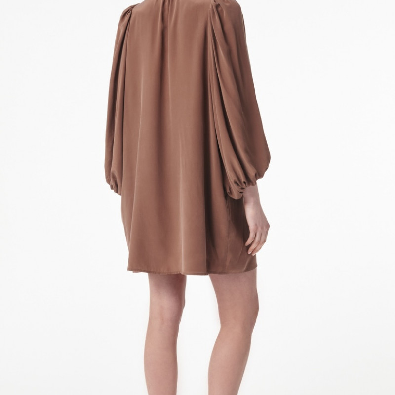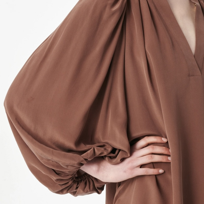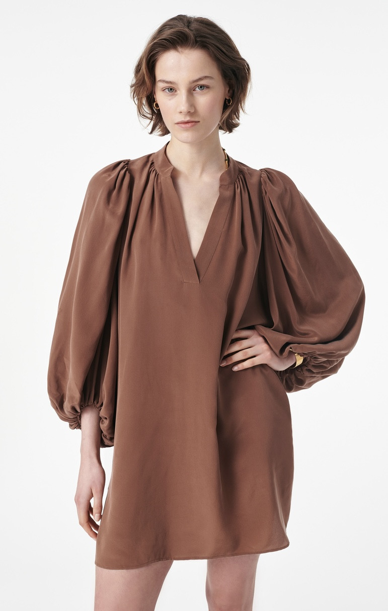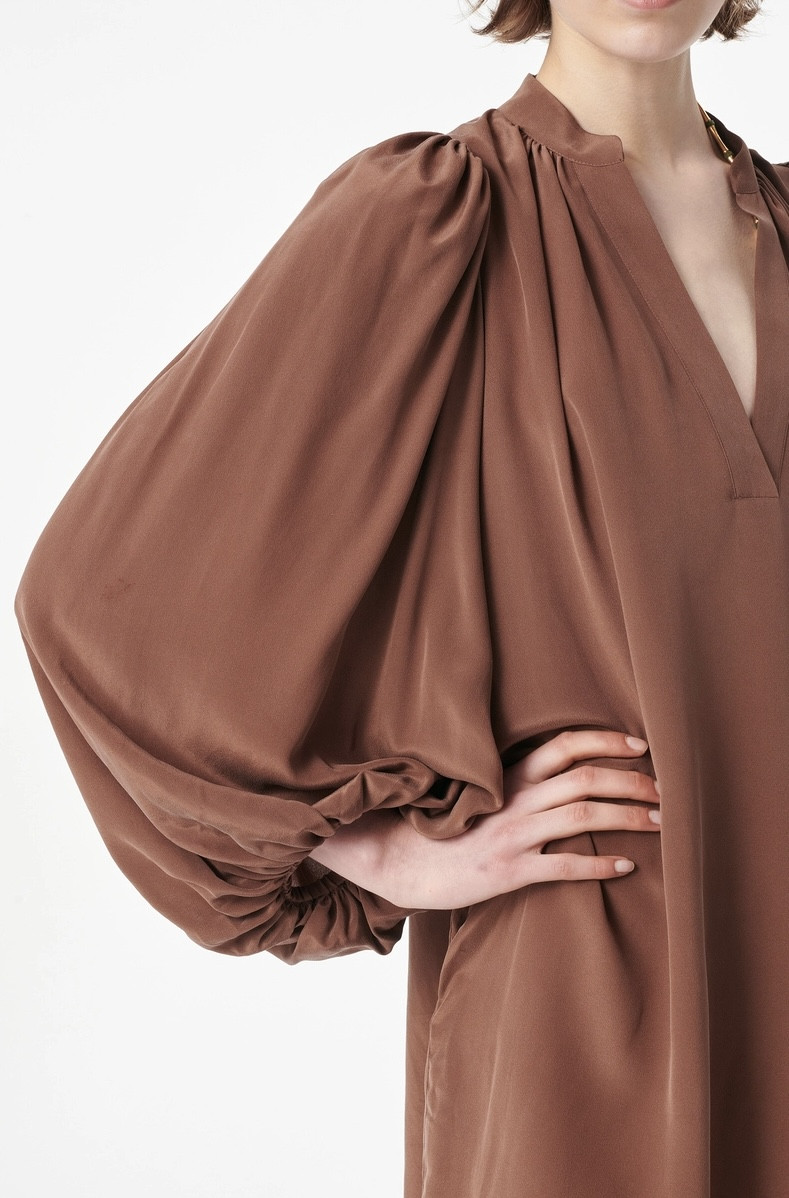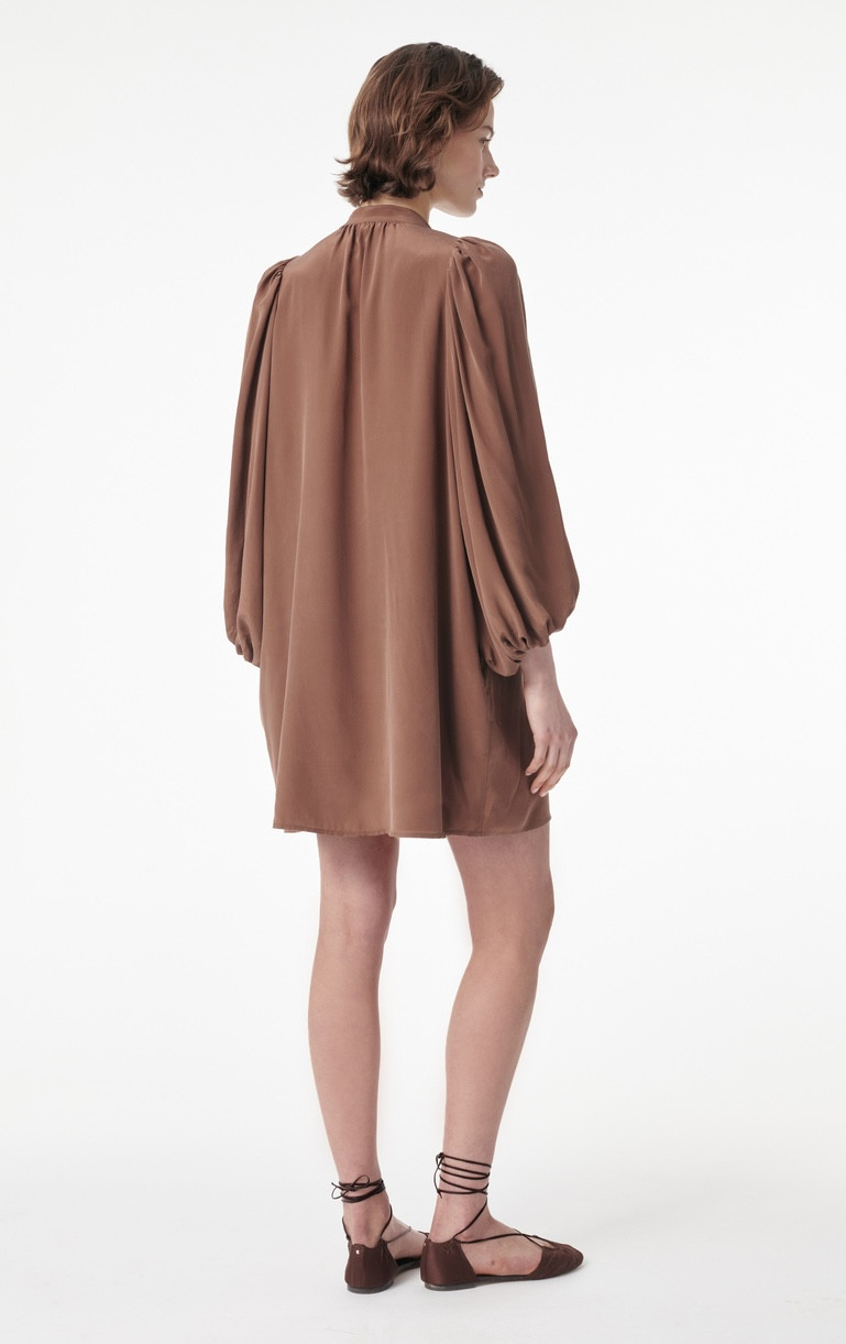 Une robe courte fluide et aérienne avec des manches bouffantes, pensée pour accompagner le mouvement avec une élégance naturelle.