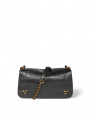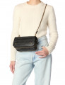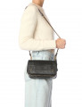 Une bandoulière amovible tressée cuir et chaine réglable en deux longueurs : 65 cm ou 105 cm.. Fermeture par un rabat en cuir aimanté. Sac organisé en trois compartiments. Volume ajustable par deux soufflets zippés. Un miroir amovible et un lien porte-clés à l’intérieur du sac.