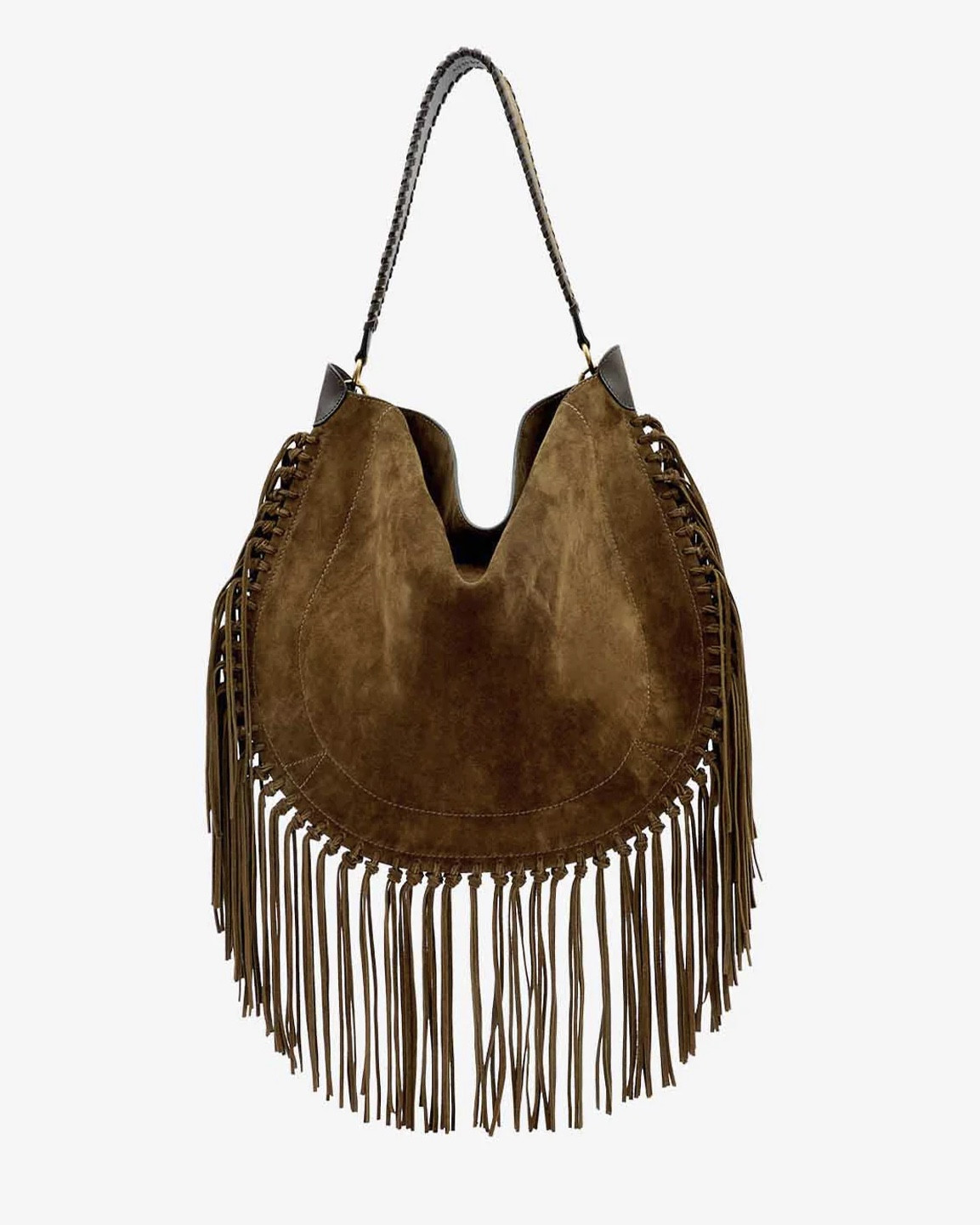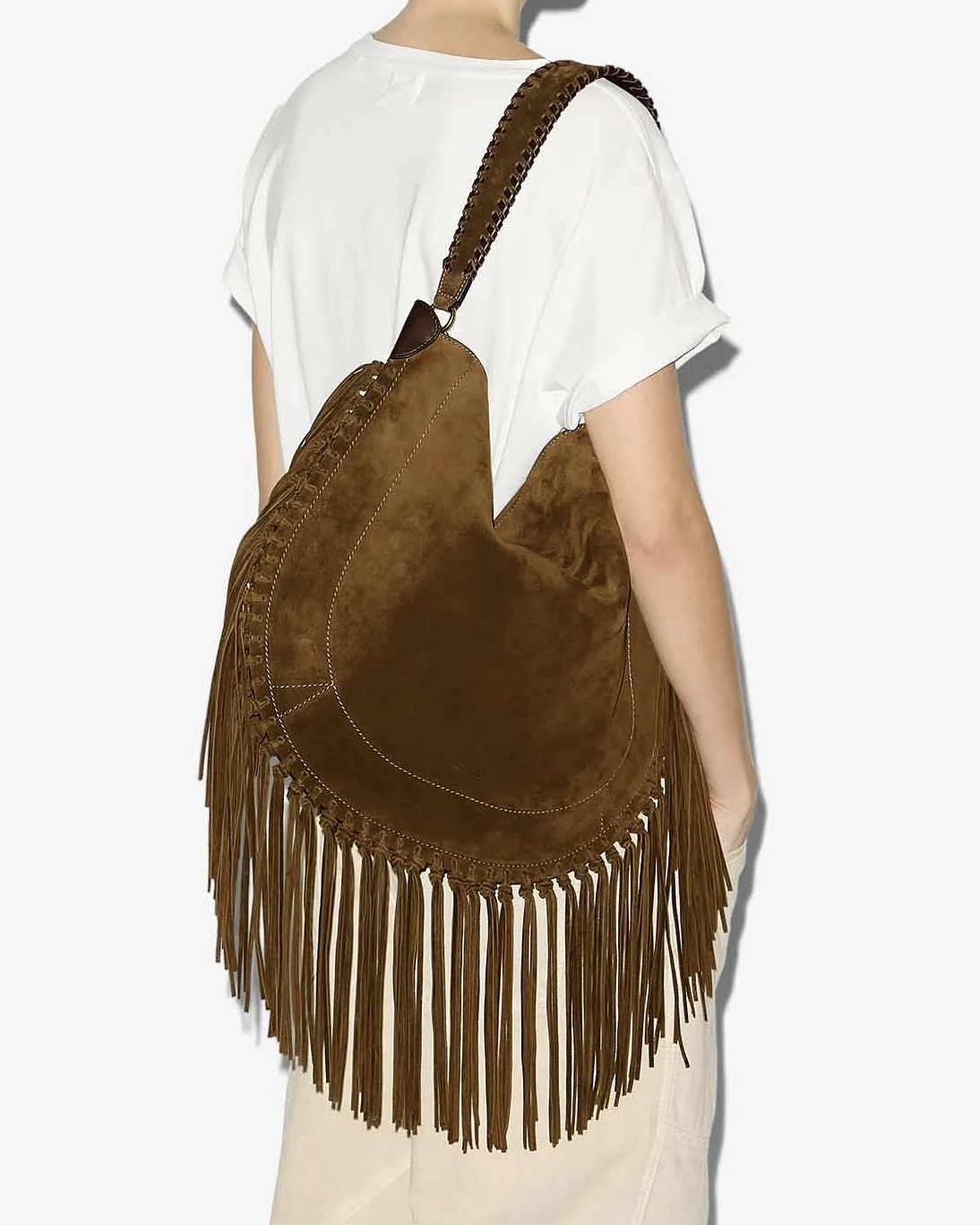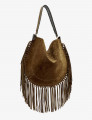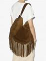 Sac porté épaule en cuir veau velours à franges