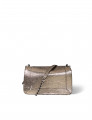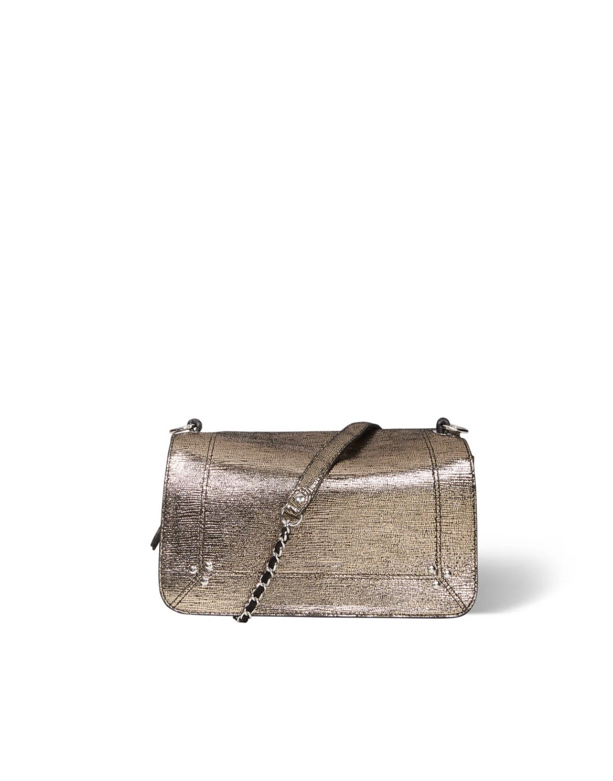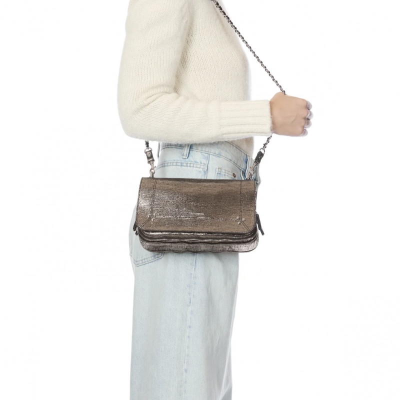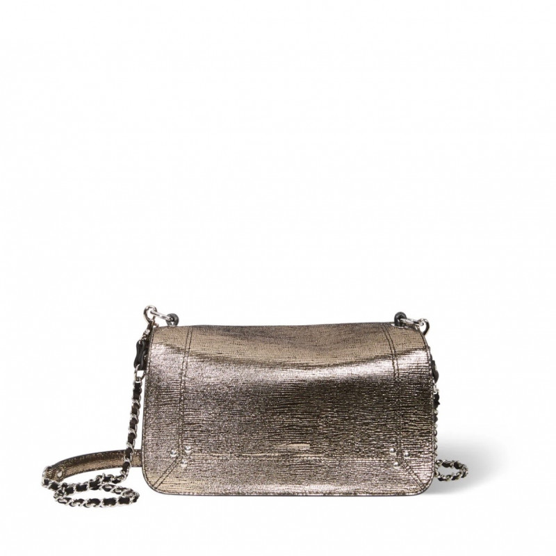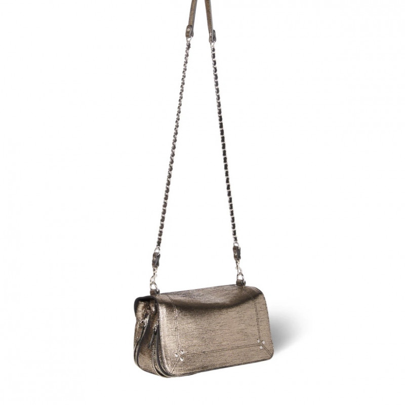Sac bandoulière, porté à l'épaule ou en croisé. Bandoulière amovible tressée cuir et chaine réglable en deux longueurs. Fermeture par un rabat en cuir aimanté.