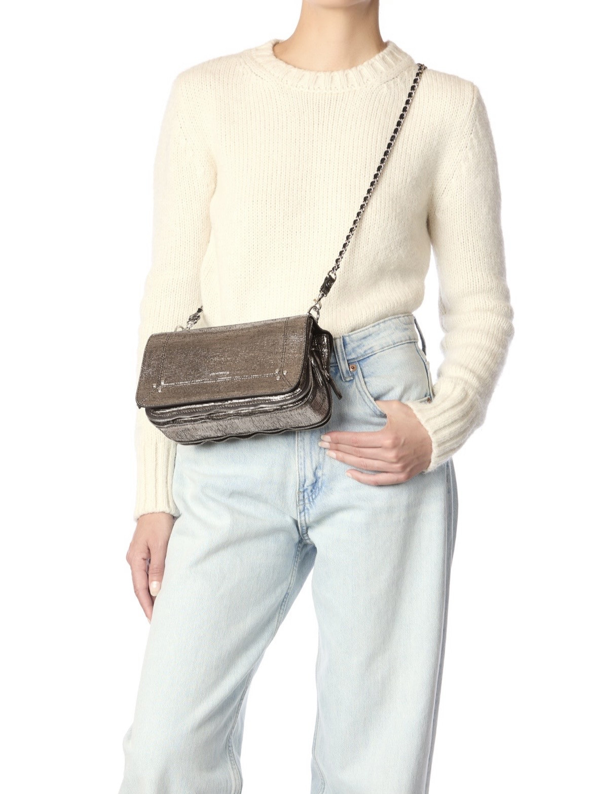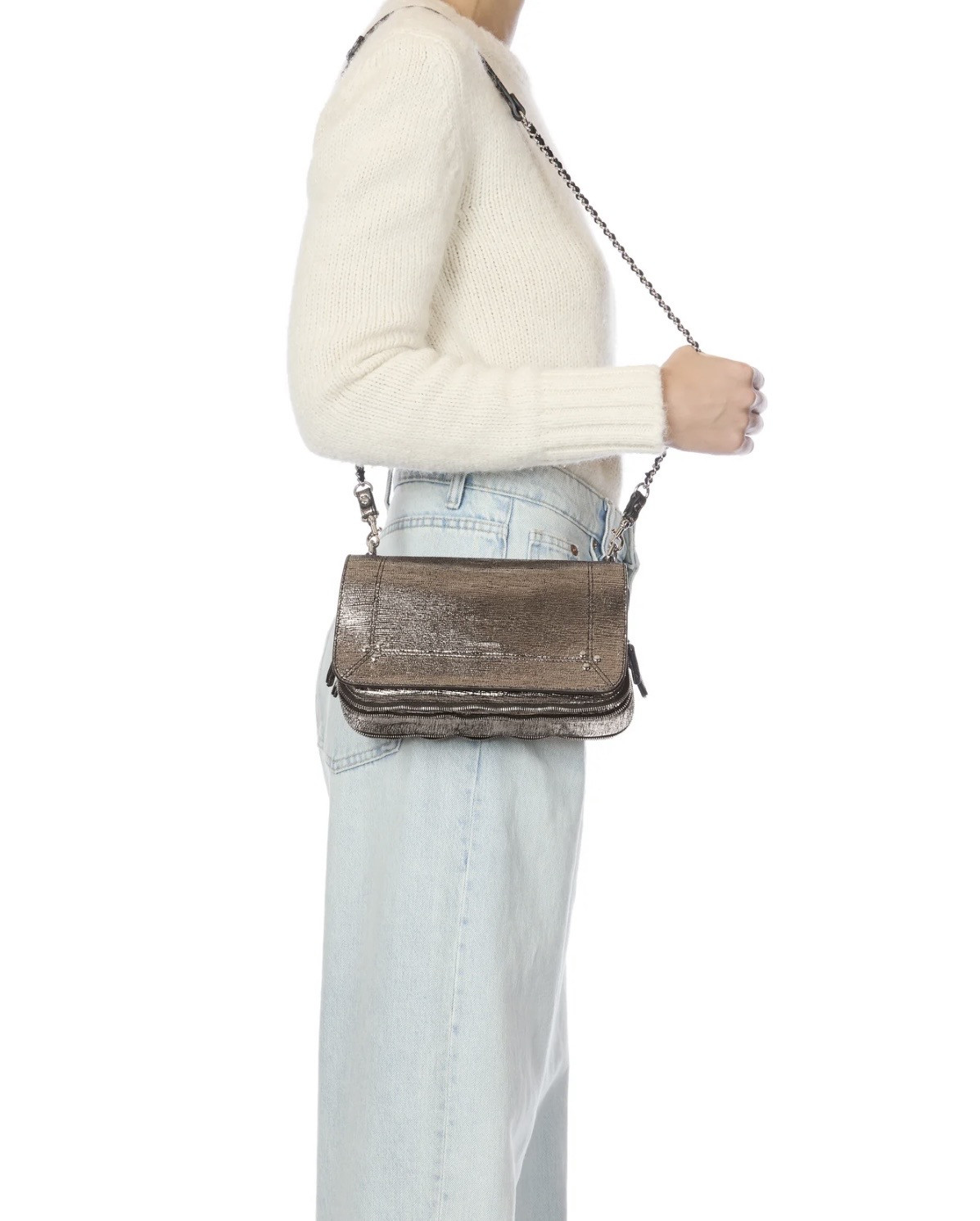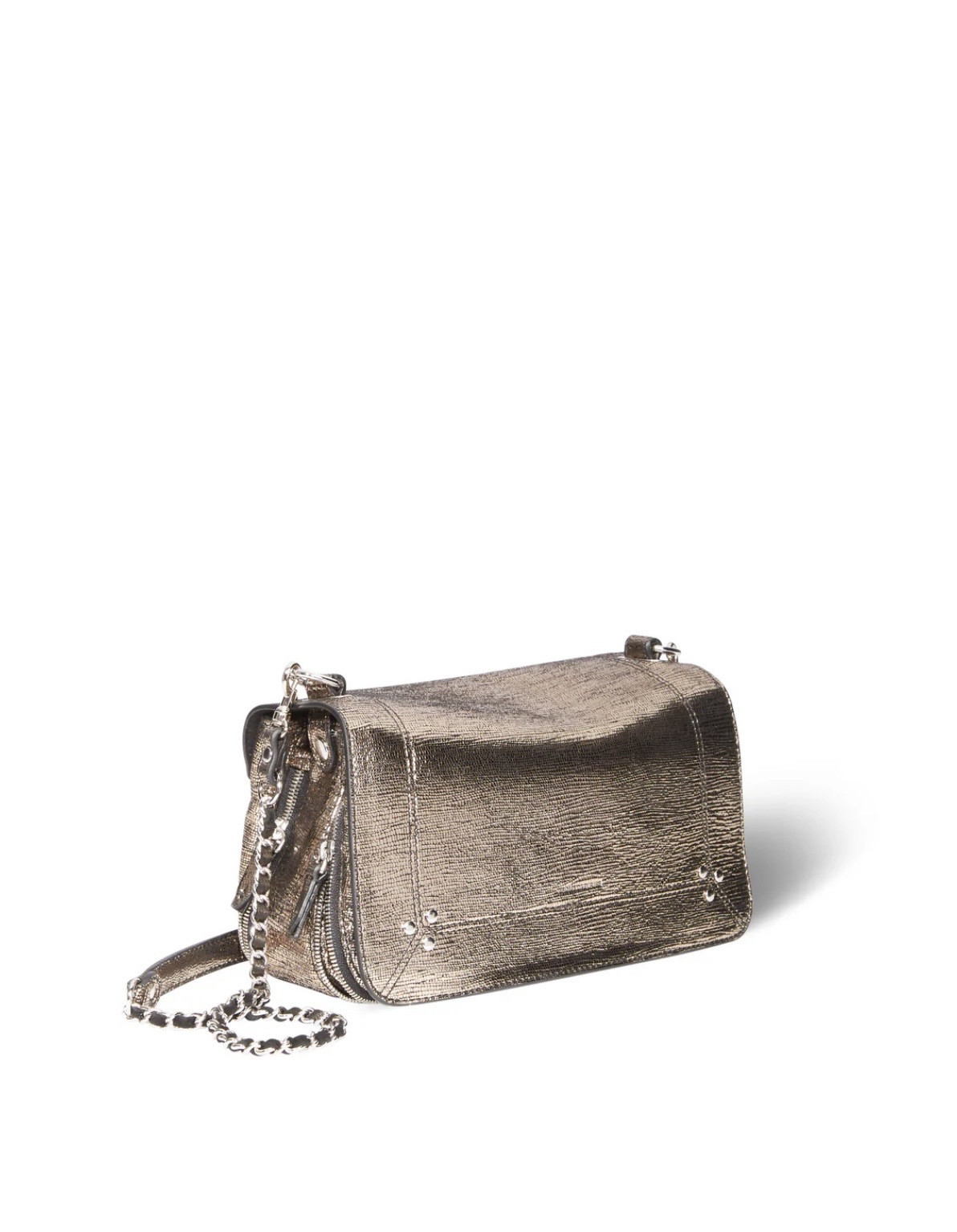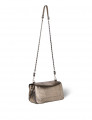 Une bandoulière amovible tressée cuir et chaine réglable en deux longueurs : 65 cm ou 105 cm.. Fermeture par un rabat en cuir aimanté. Sac organisé en trois compartiments. Volume ajustable par deux soufflets zippés. Un miroir amovible et un lien porte-clés à l’intérieur du sac. Sac 100% Chèvre / Doublure 100% Coton Dimensions : 25 x 15 x 10 cm Peut être associé à toutes nos bandoulières et anses
