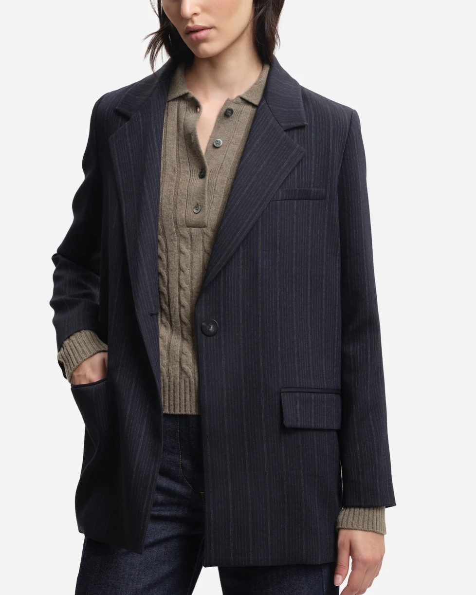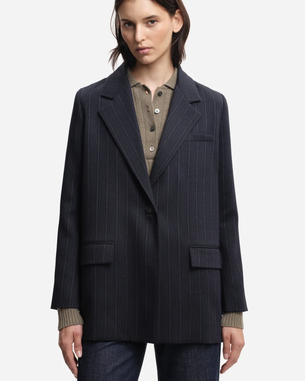 Veste droite à épaules structurées, Norton est un modèle iconique de la marque. Avec son col tailleur, ses poches passepoilées à rabat et sa coupe ajustée, elle combine allure classique et confort au quotidien.