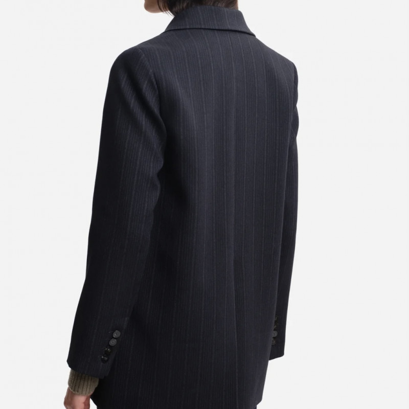 Veste cintrée à épaules structurées - Col tailleur à revers cranté - Poche poitrine gilet - Poches passepoilées à rabat - Boutonnage simple à bouton gravé - Manches longues - Fente sur le bas de manche avec boutonnières et boutons gravée - Fente au dos - Entièrement doublé