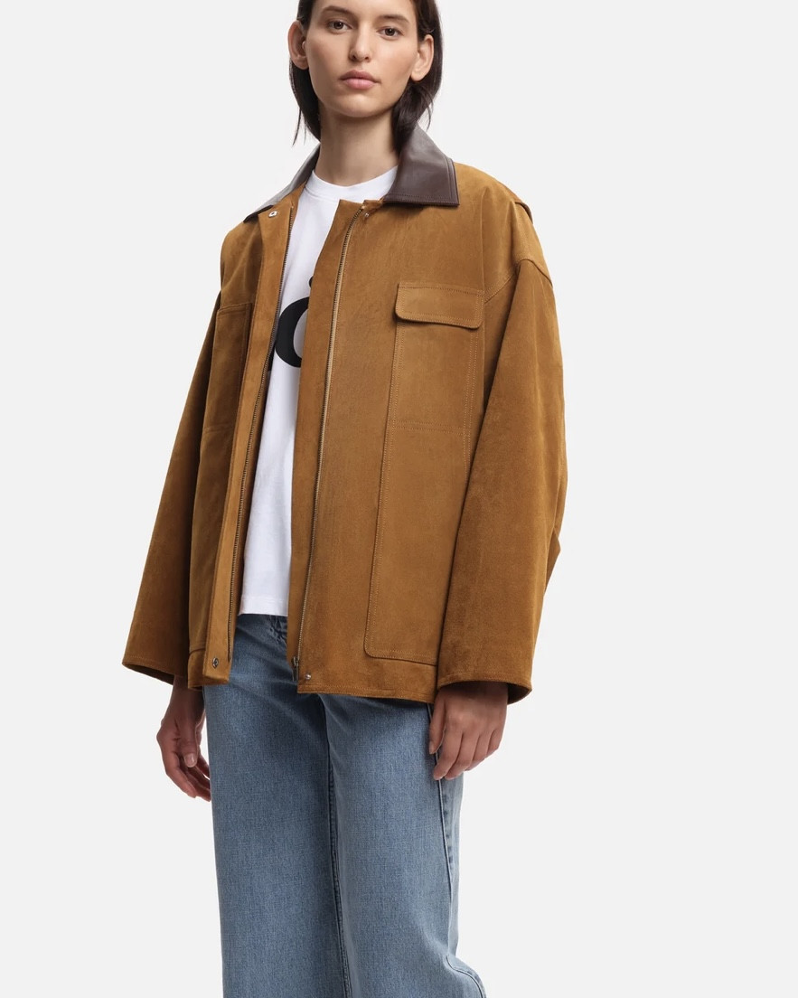 Blouson oversize en cuir de vachette, pensé pour traverser les saisons avec allure. Sa coupe droite et ses finitions soignées en font une pièce intemporelle, à la fois robuste et élégante.