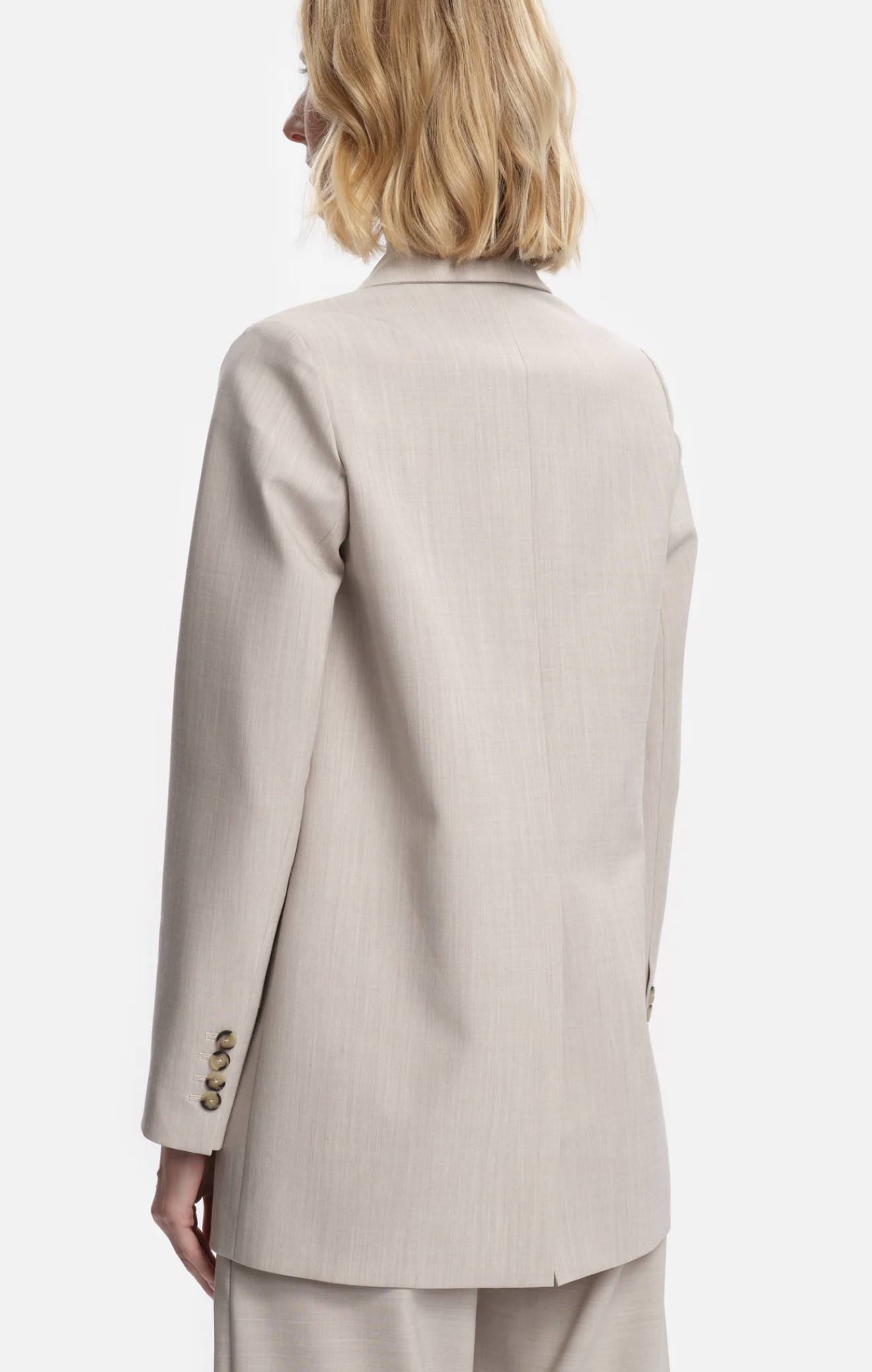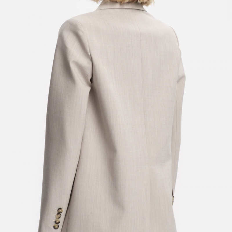 Veste cintrée à épaules structurées - Col tailleur à revers cranté - Poche poitrine gilet - Poches passepoilées à rabat - Boutonnage simple à bouton gravé - Manches longues - Fente sur le bas de manche avec boutonnières et boutons gravée - Fente au dos - Entièrement doublé