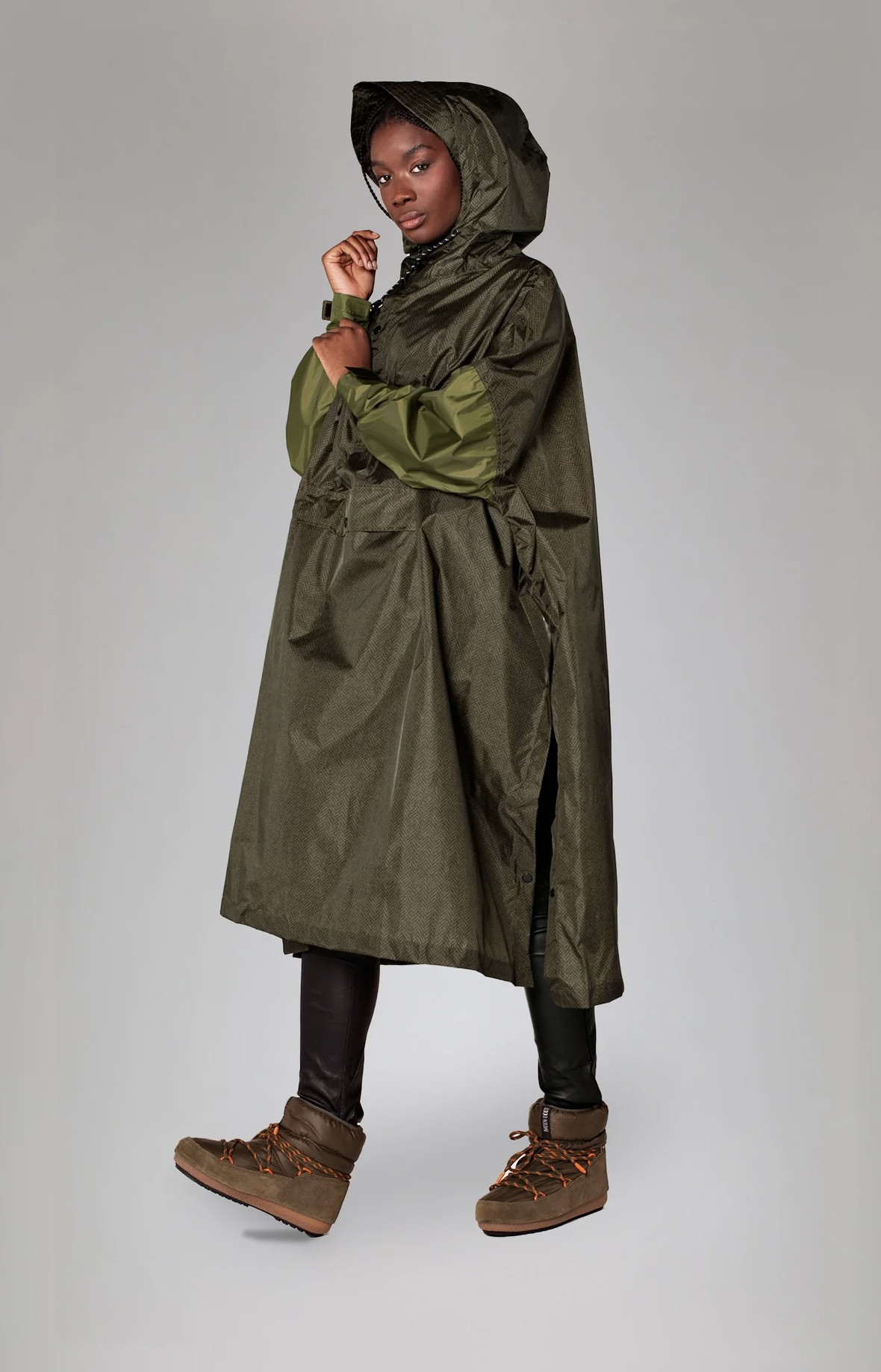 L’impression en chevrons a été omniprésente avec style. Nous avons donné à ce beau motif géométrique une touche fraîche en vert et noir. Ajoutez un peu de sophistication à vos journées pluvieuses avec le poncho de pluie Herringbone.