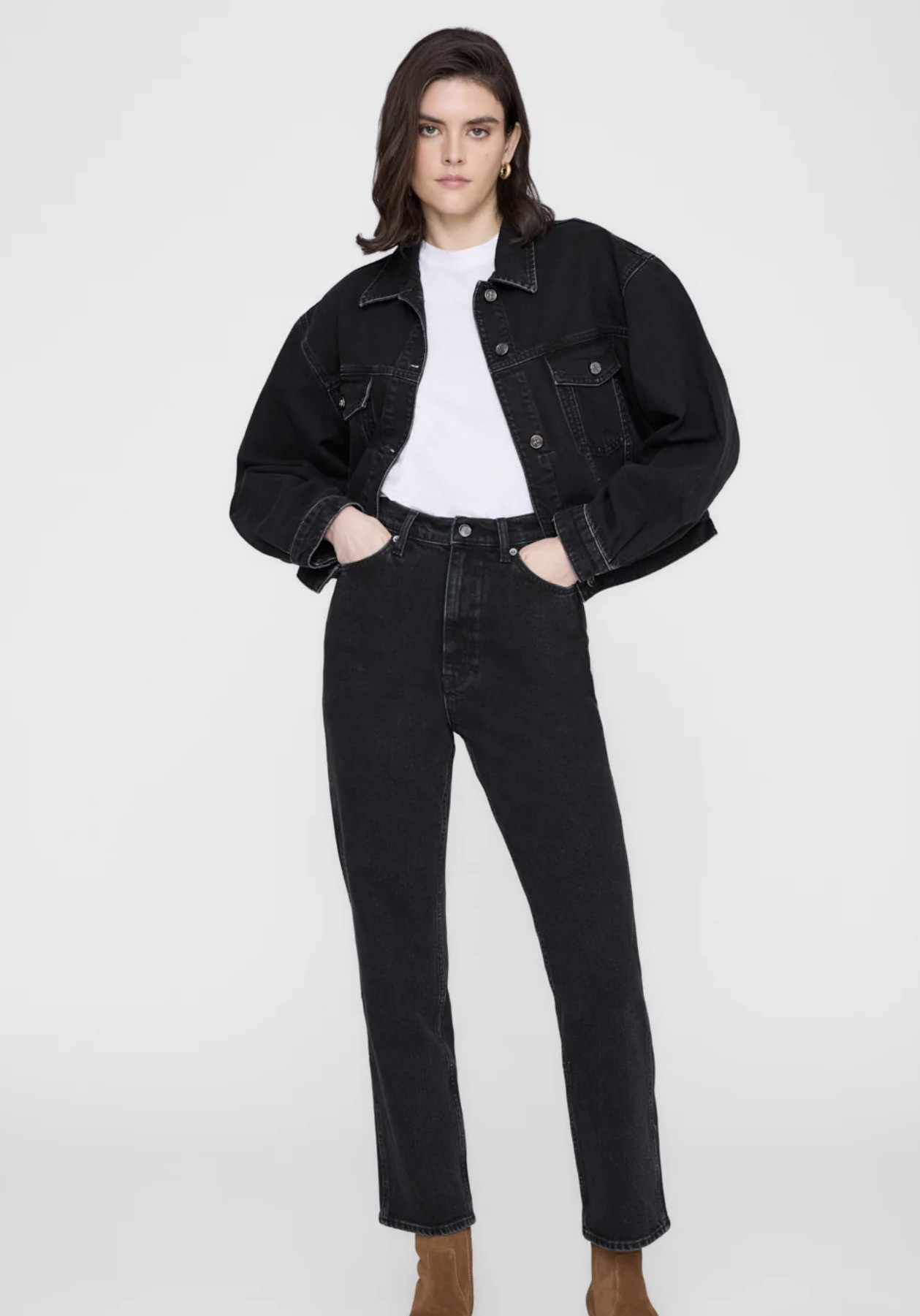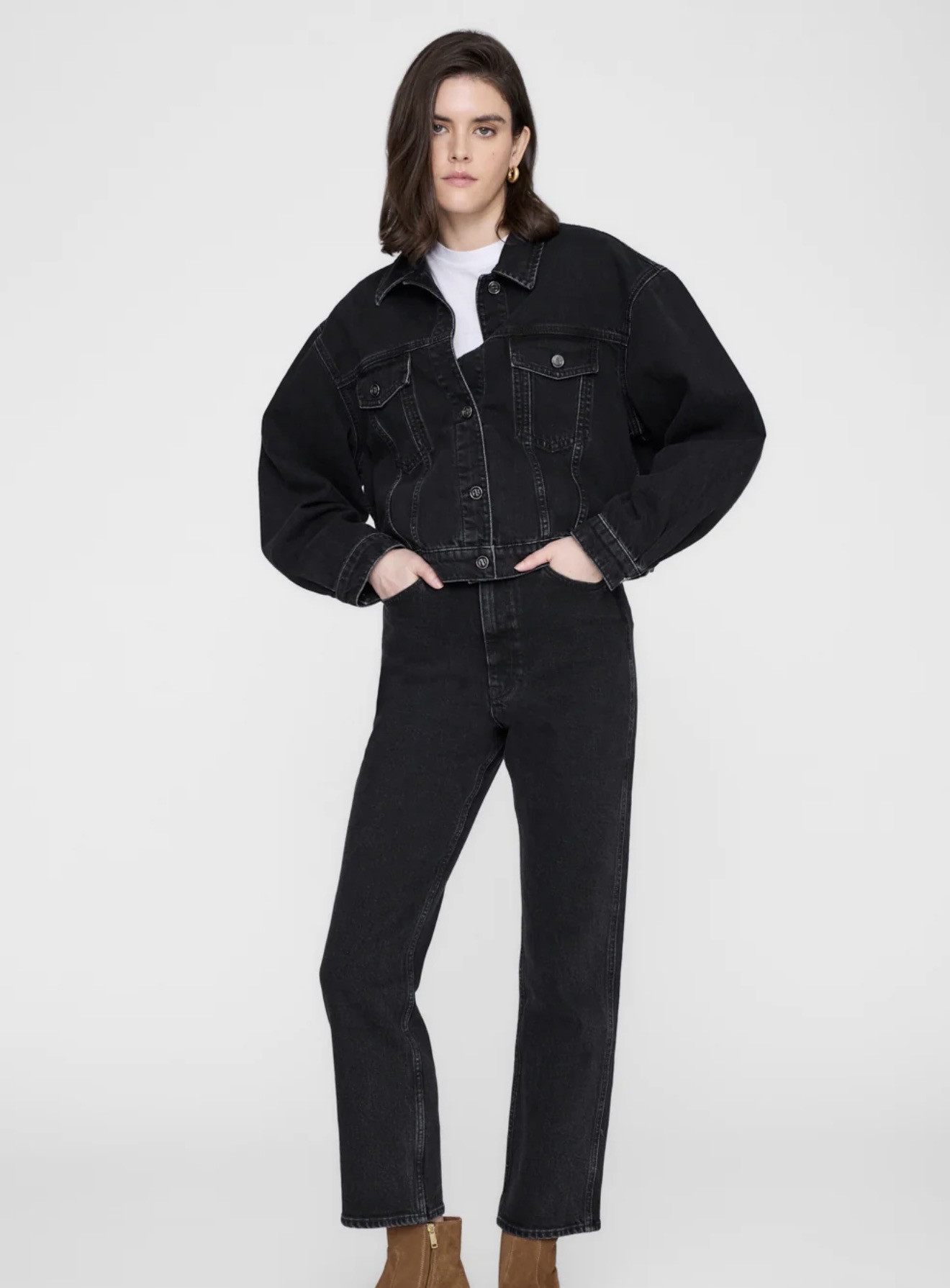 - Boxy, légèrement cropped silhouette